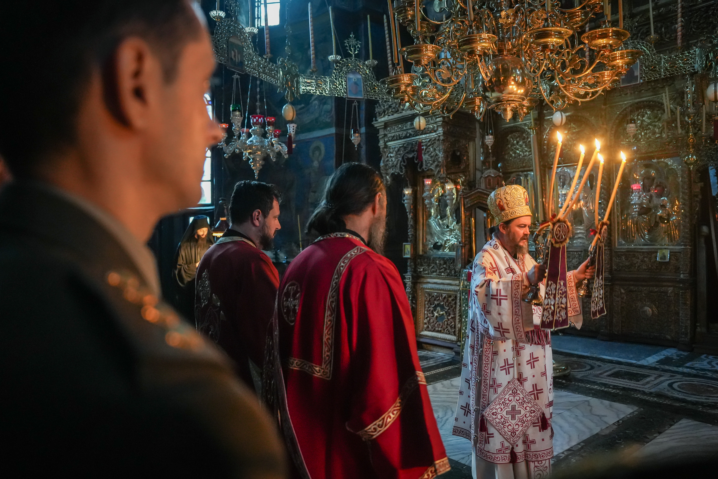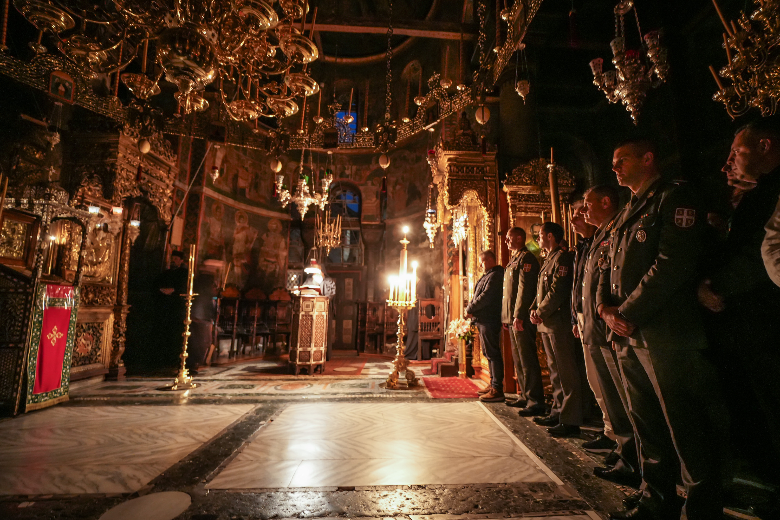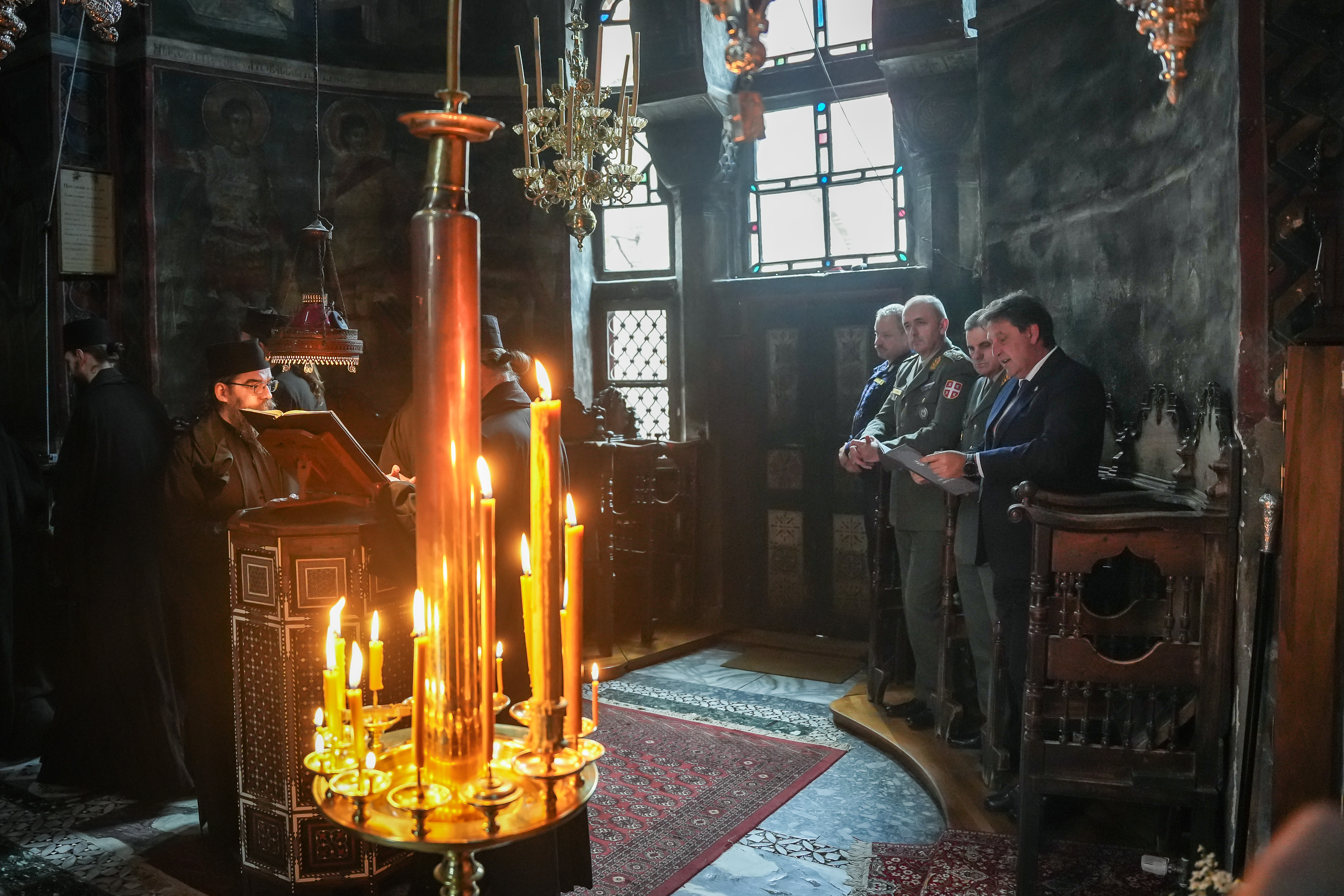 Министар одбране Братислав Гашић присуствовао је данас светој архијерејској литургији у манастиру Хиландар где је током протекла два дана боравио са члановима свога колегијума и војним свештенством.