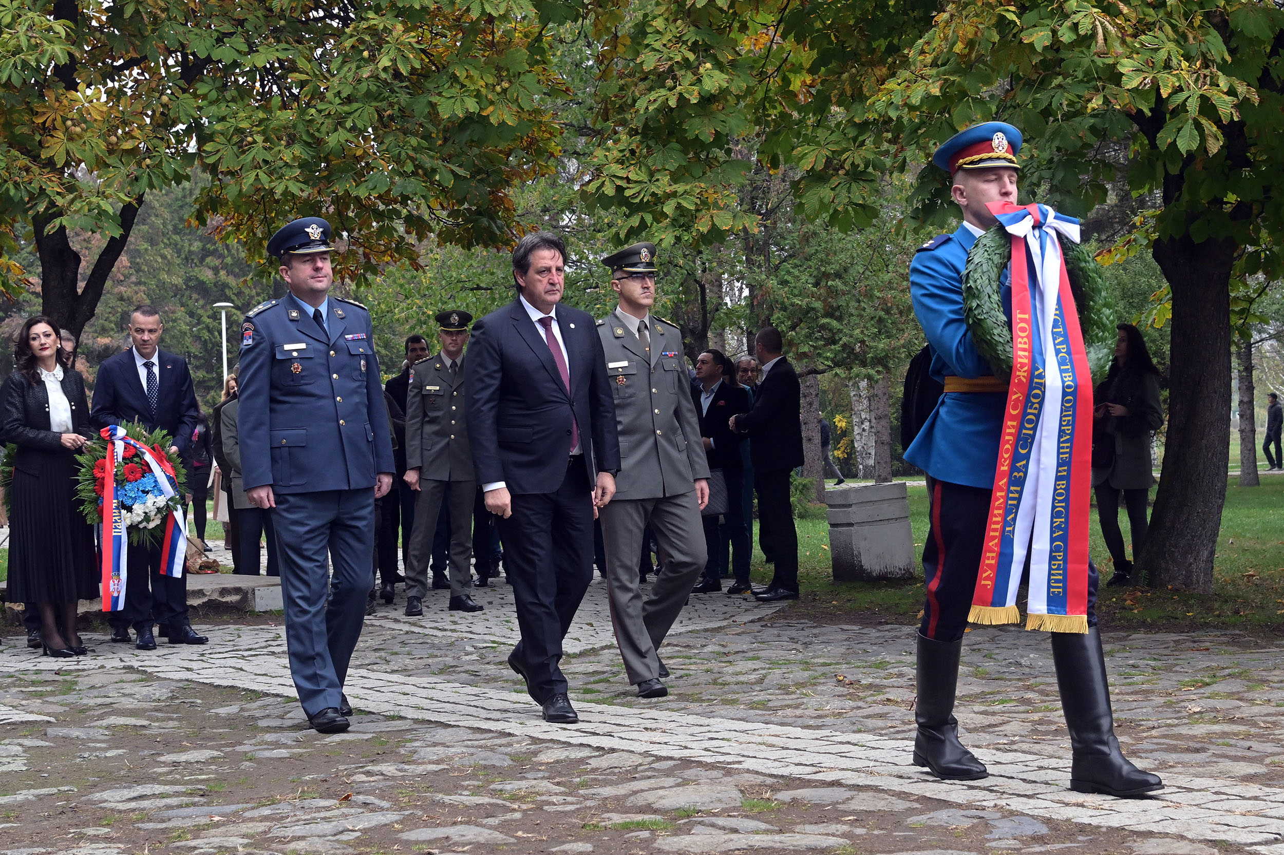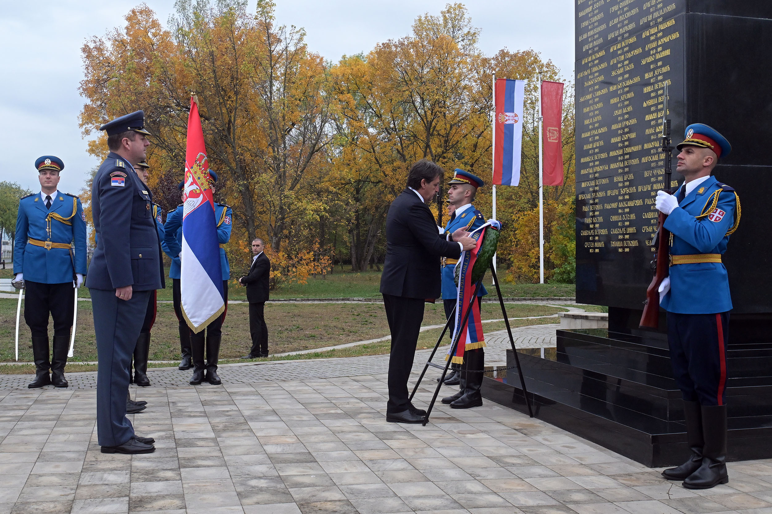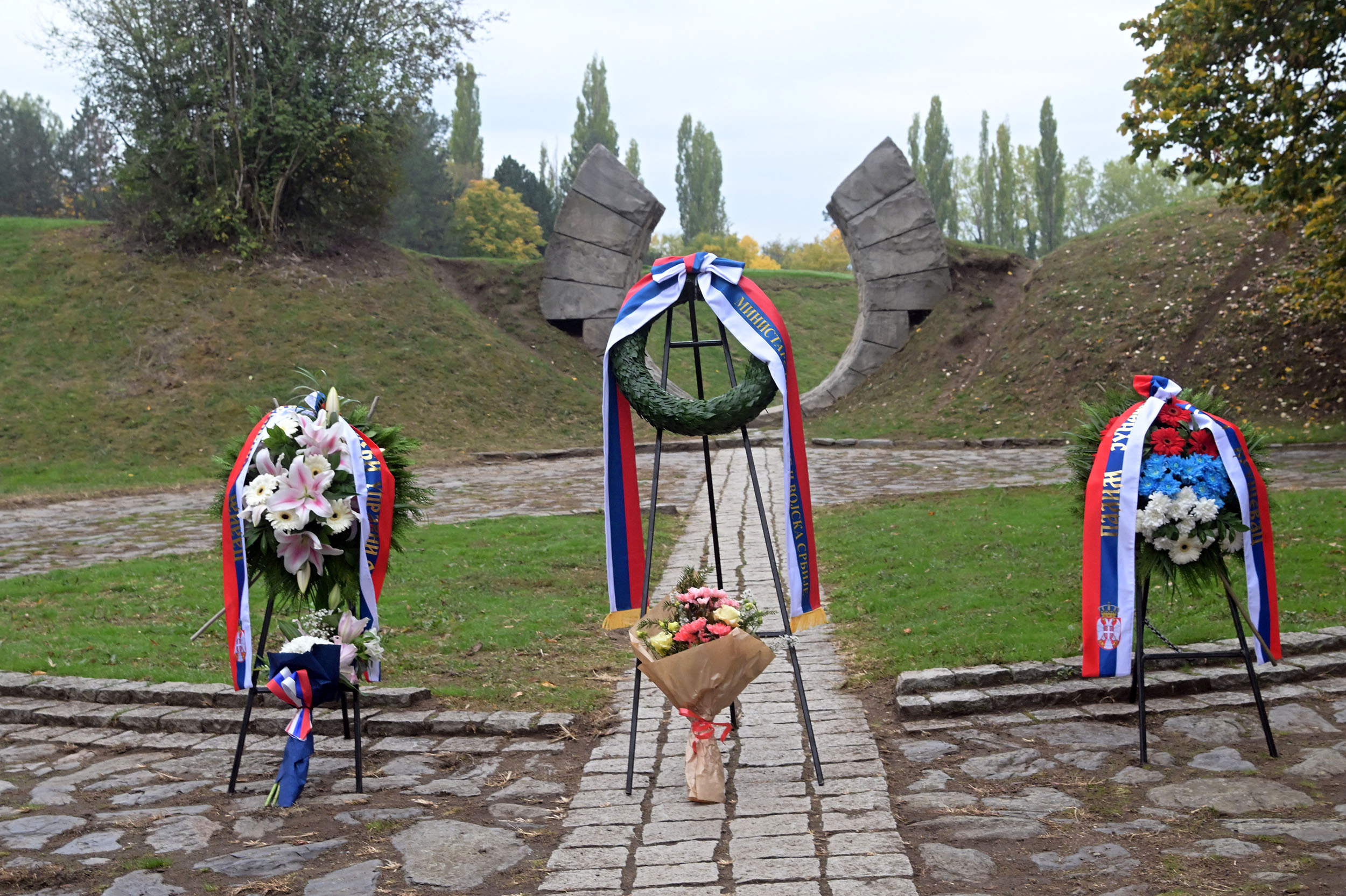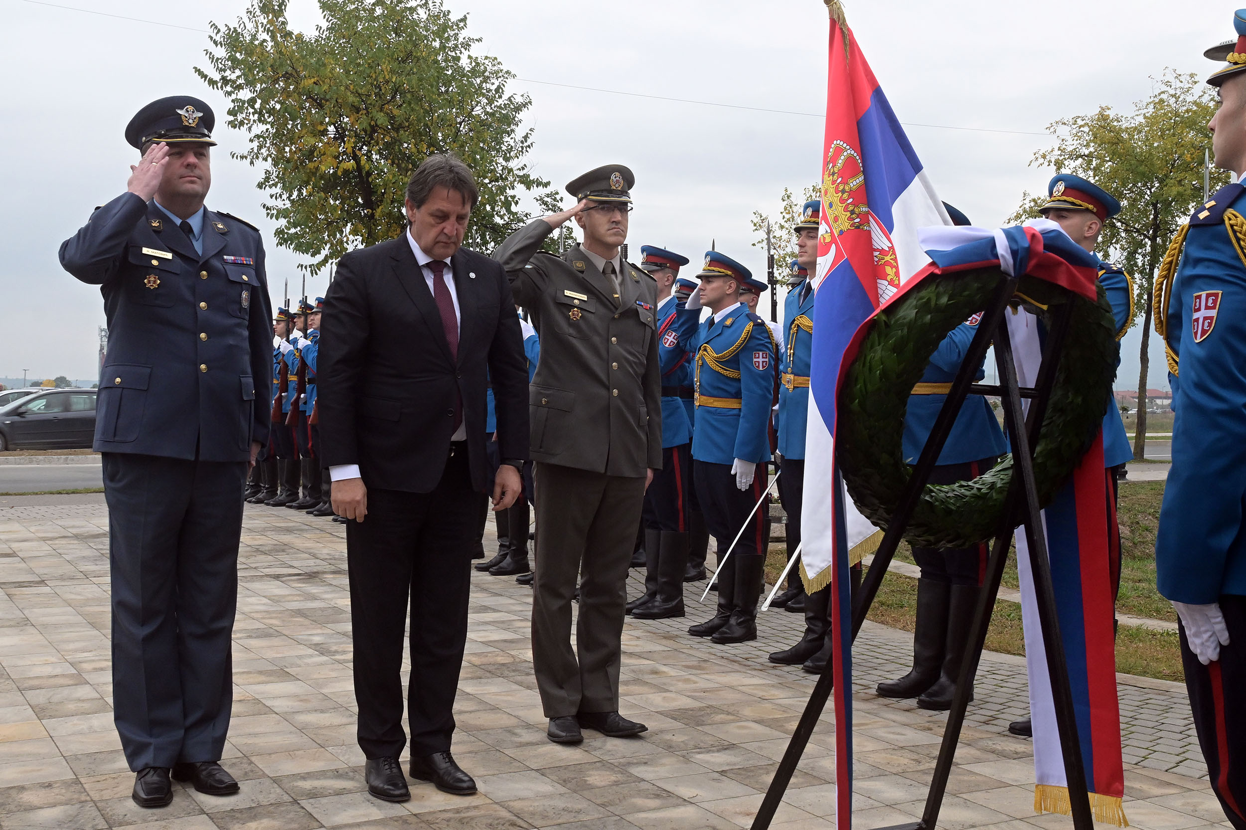Том приликом, министар одбране венац је положио у пратњи шефа кабинета министра одбране пуковника Николе Матовића и команданта Центра АБХО пуковника Владимира Филиповића. Обележавање је настављено полагањем венаца на локацији „Две хумке“ у оквиру истог спомен комплекса.