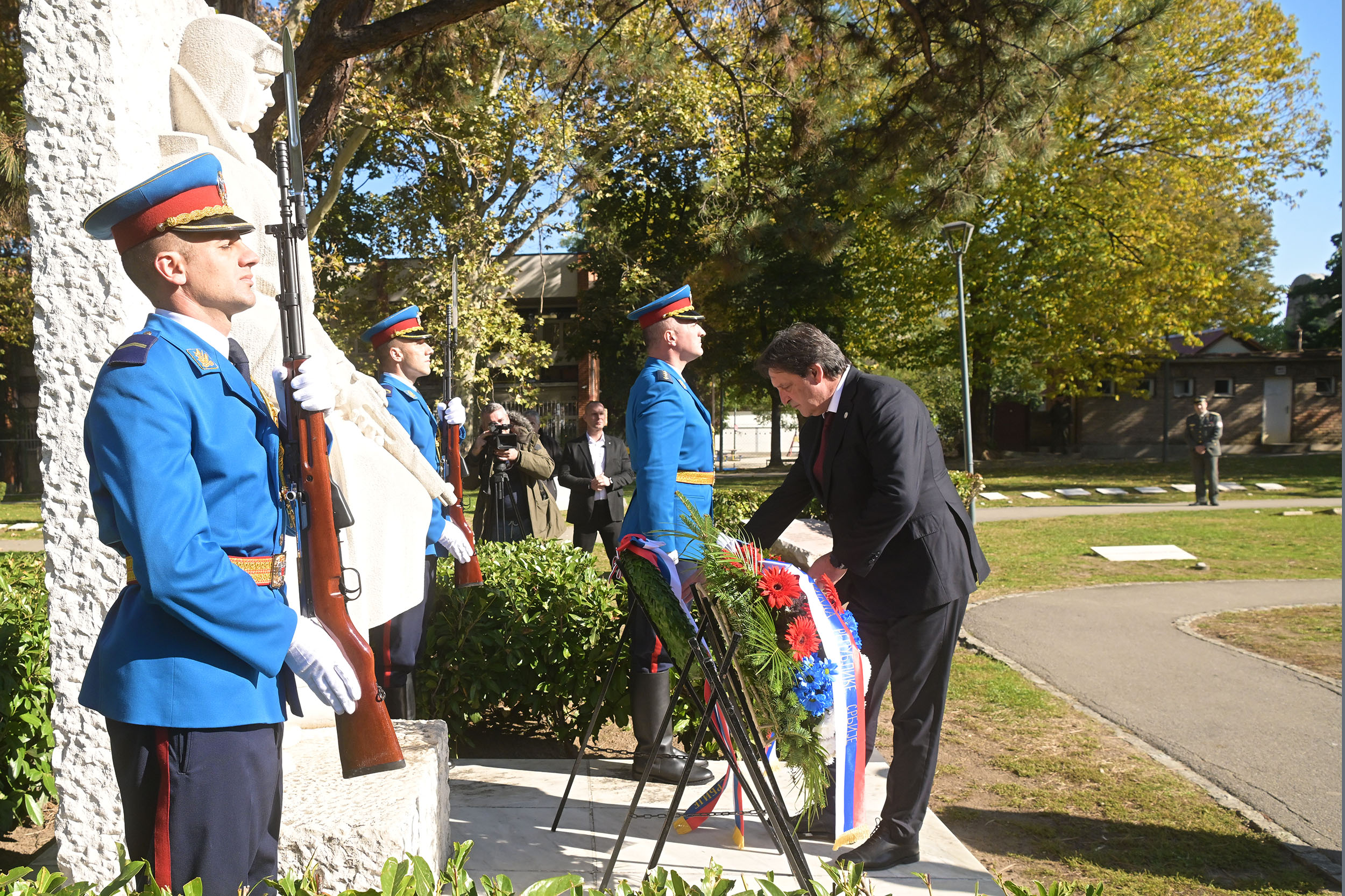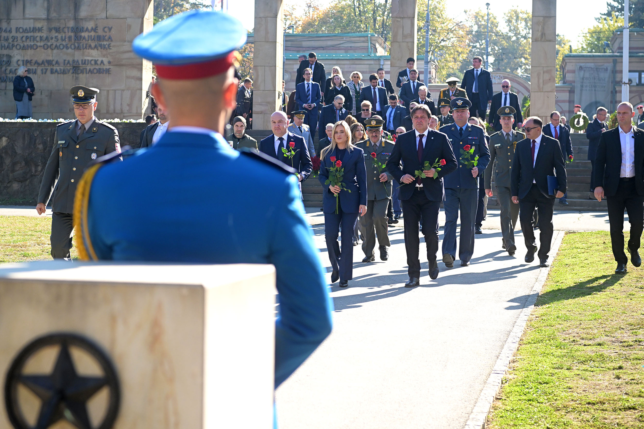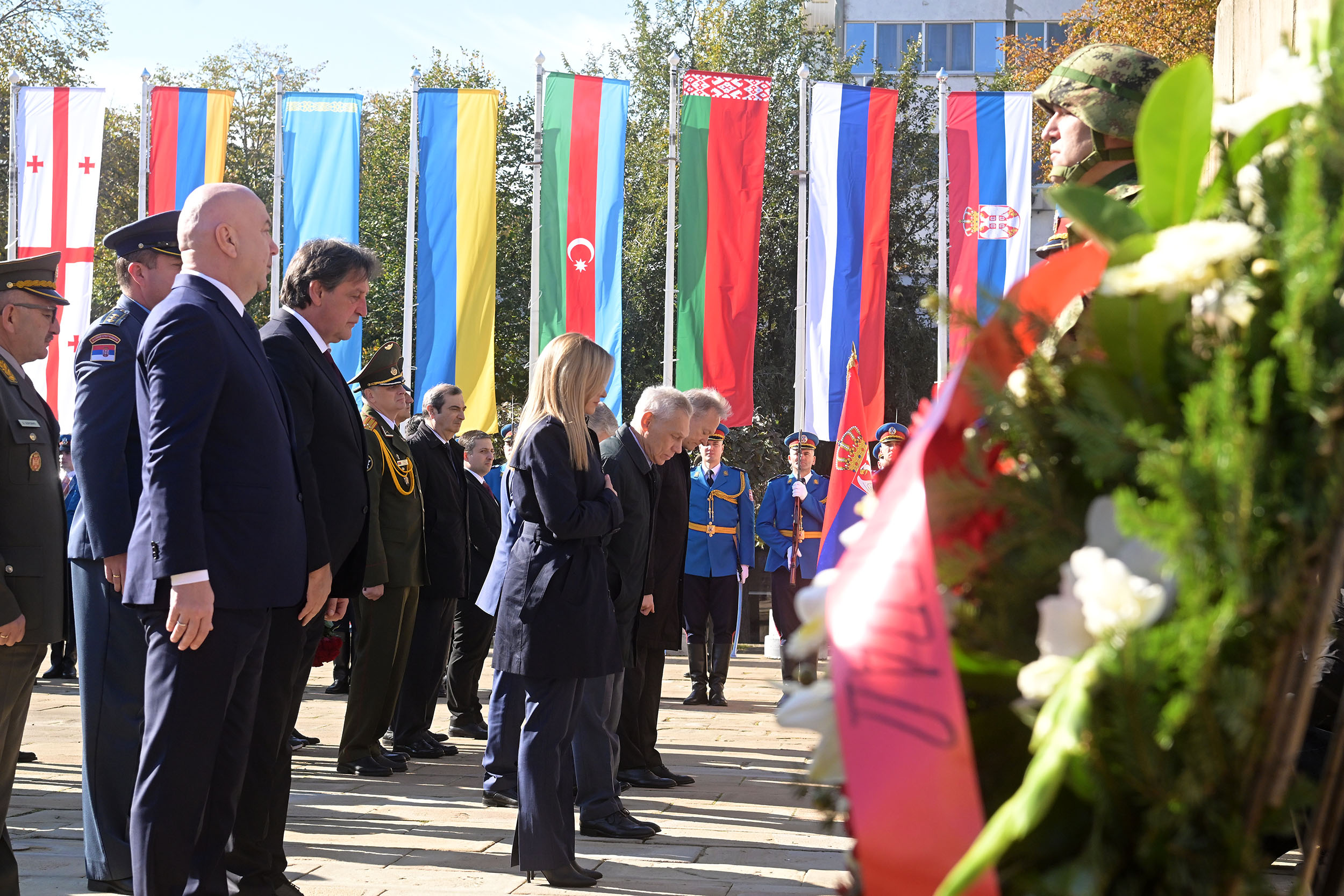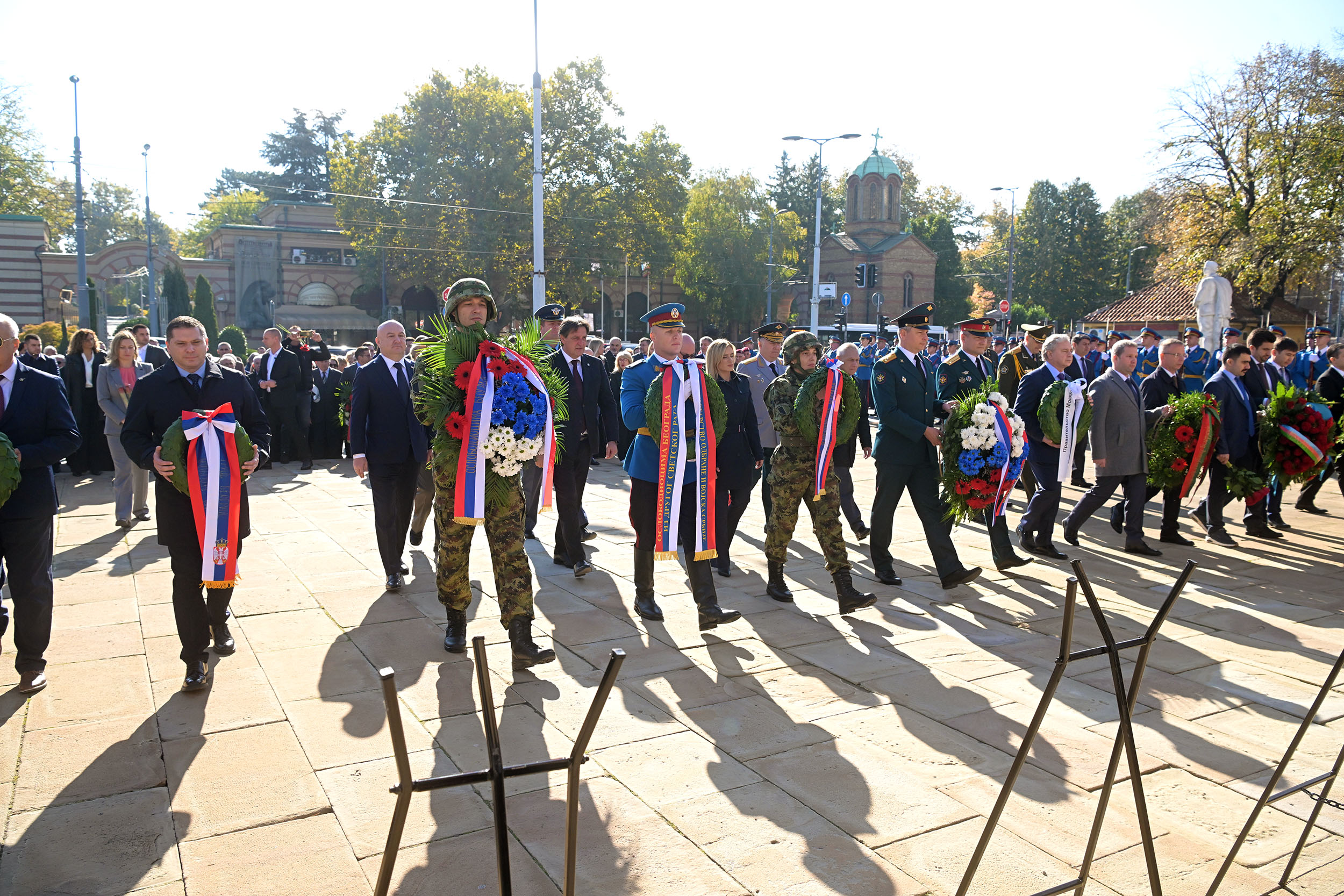 На данашњој државној церемонији венце су положили представници Града Београда, СУБНОР-а Србије и Београда, представници амбасада Азербејџана, Белорусије, Грузије, Јерменије, Казахстана и Русије у Србији, као и представници борачких удружења која баштине традиције народноослободилачких ратова.