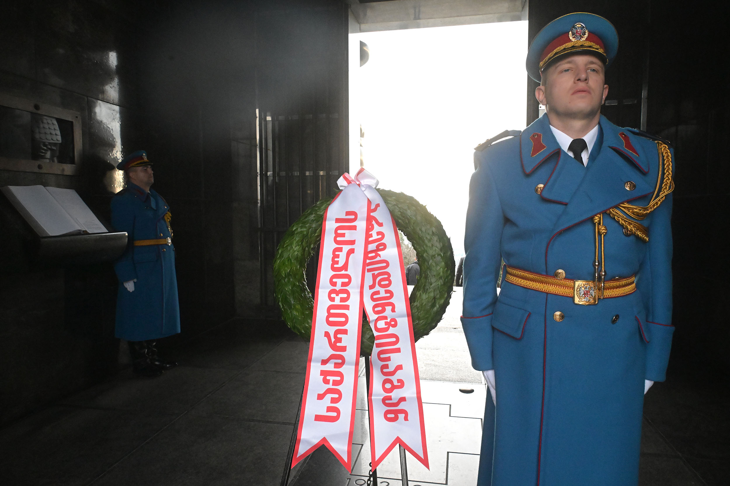 Након церемоније полагања венца, уз почасни строј Гарде Војске Србије и интонирања химни Србије и Грузије, председник Кавелашвили уписао се у спомен-књигу.