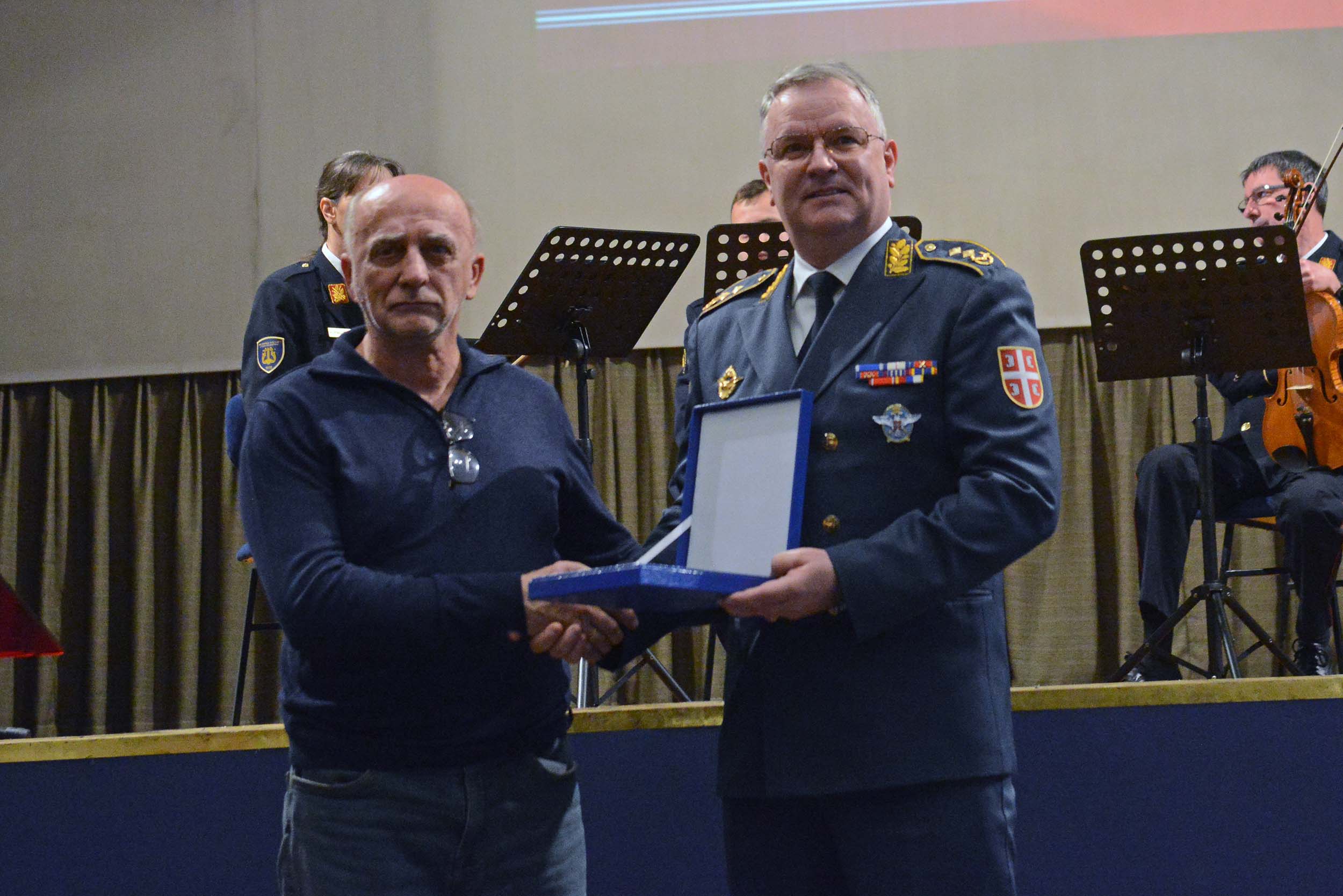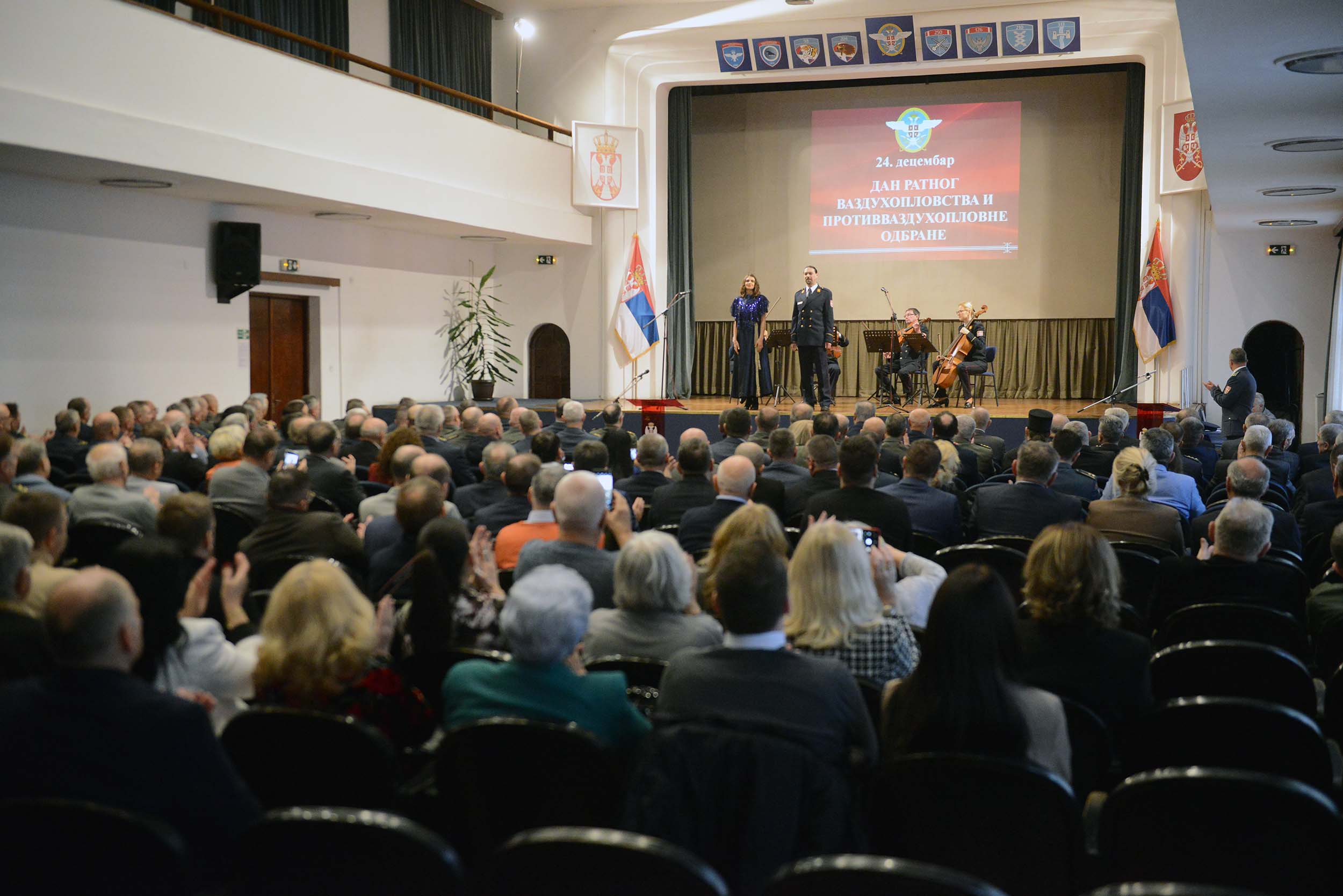 На данашњој свечаности командант РВ и ПВО је за успешну сарадњу у 2025. години уручио плакету представнику предузећа „Аероклуб Ваљево“, а програм је употпуњен наступом Уметничког ансамбла Министарства одбране „Станислав Бинички“ и пројекцијом кратког документарног филма „Ратно ваздухопловство и противваздухооловна одбрана у претходних годину дана“.