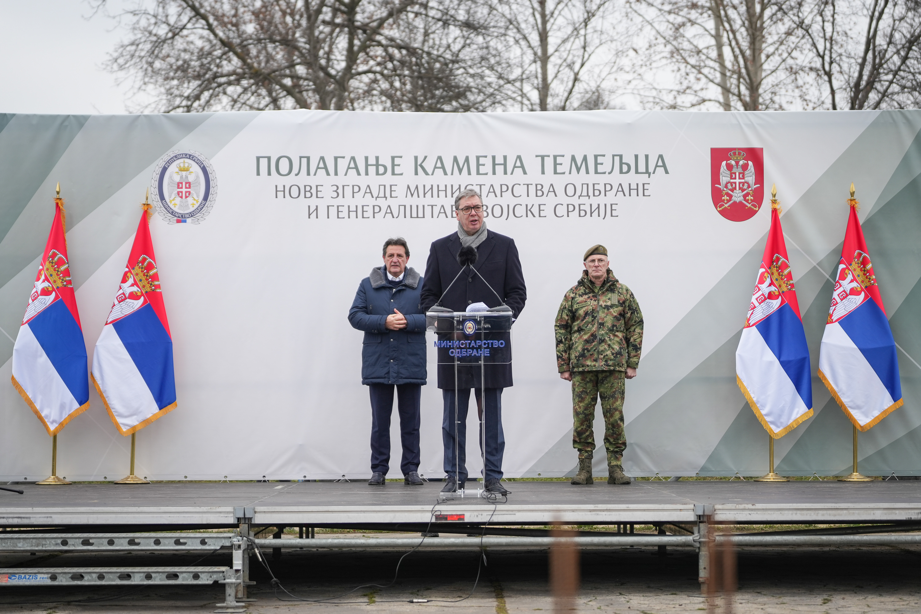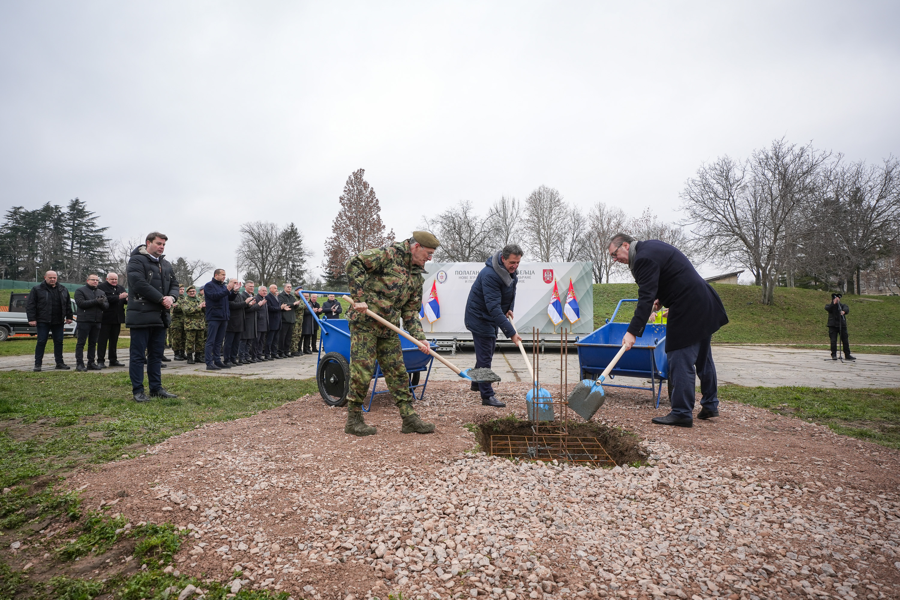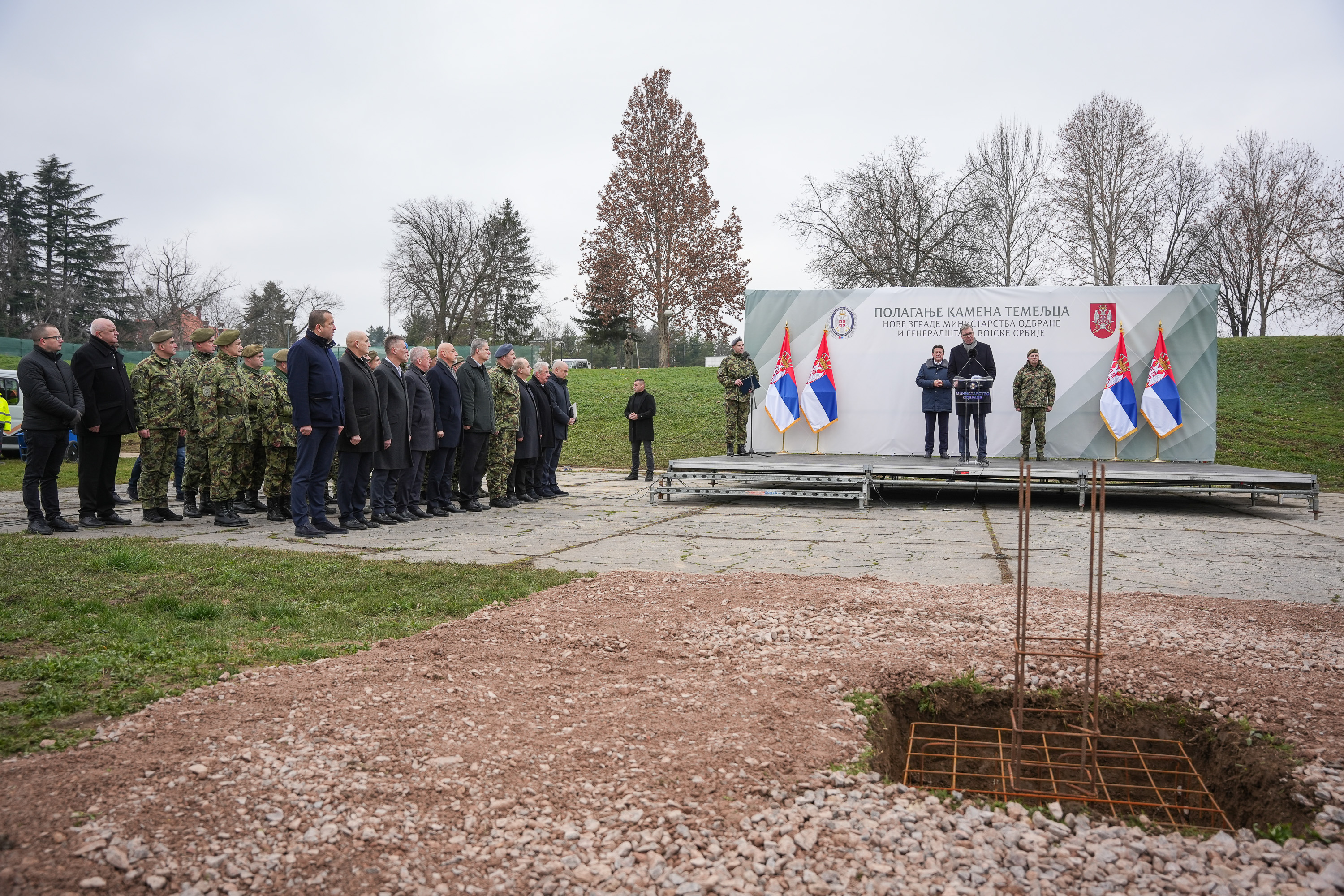 Председник Републике и врховни командант Војске Србије Александар Вучић, заједно са министром одбране Братиславом Гашићем и начелником Генералштаба Војске Србије генералом Миланом Мојсиловићем, положио је данас камен темељац за изградњу нове зграде Министарства одбране и Генералштаба Војске Србије у касарни „Бањица“ у Београду, чиме је озваничен почетак једног од најзначајнијих инфраструктурних пројеката у систему одбране.