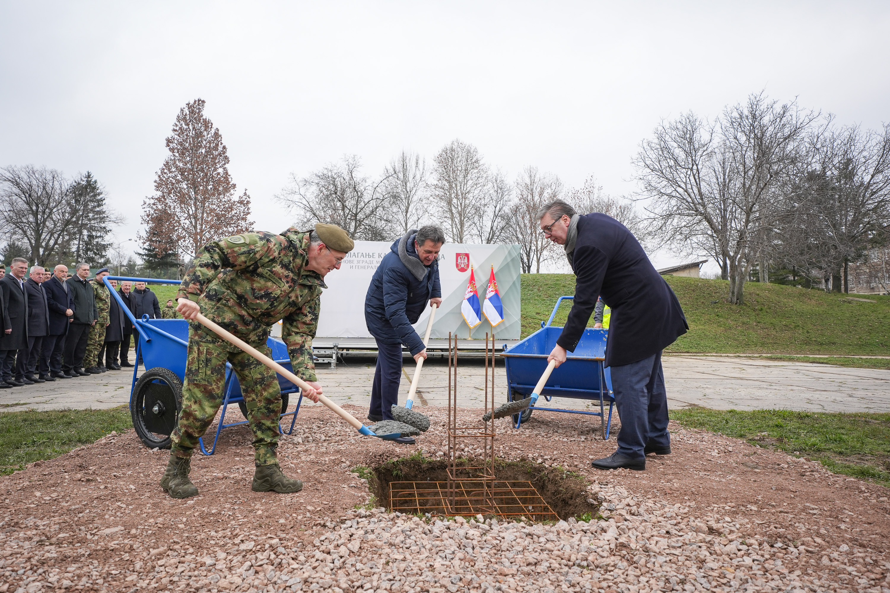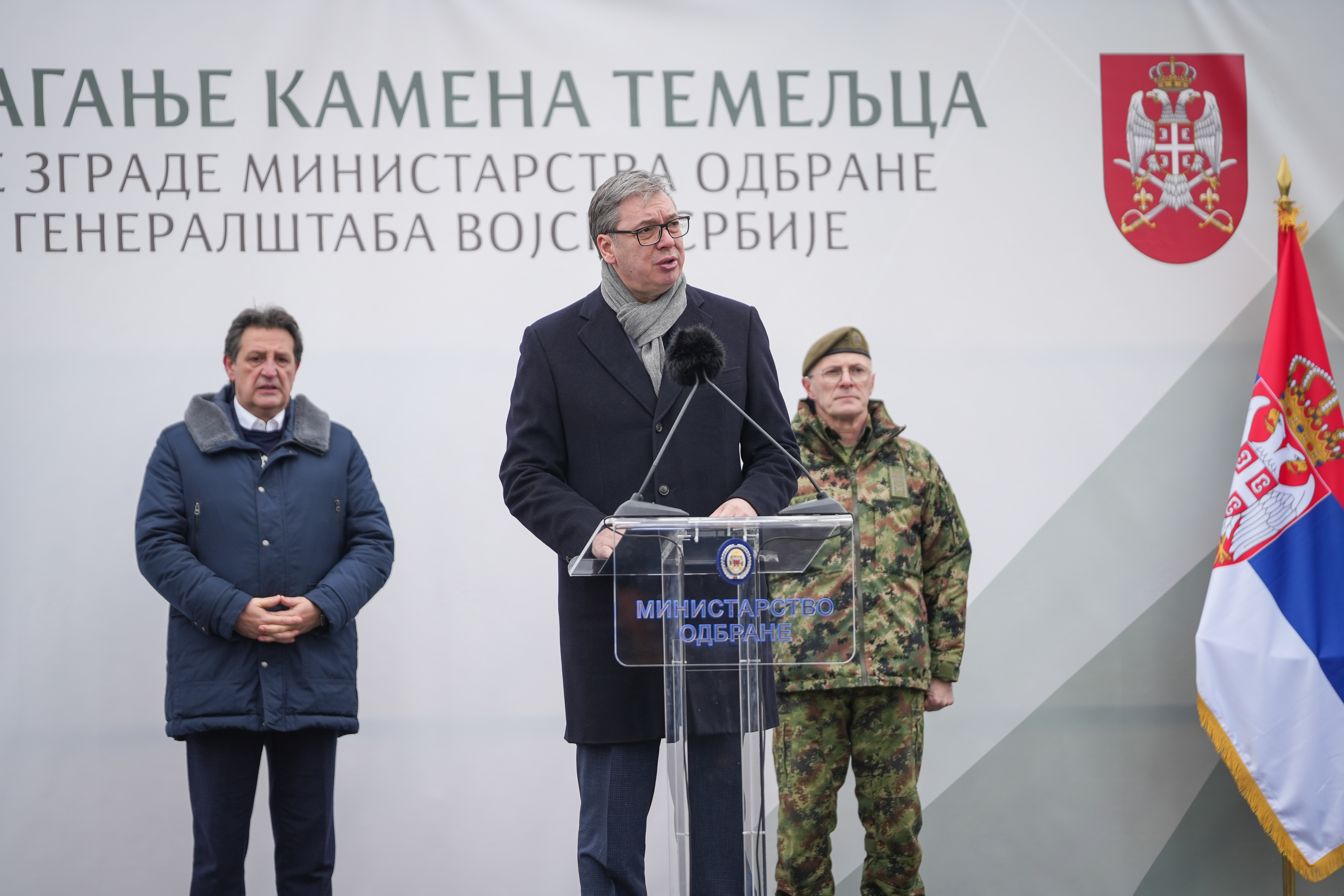 - Овде ће бити изграђене велелепне зграде Министарства одбране и Генералштаба наше војске. Нето површина, корисна површина ће бити 50.000 м2. Огроман простор, баш у складу са значајем наше армије. Биће све завршено за тачно три године, до краја 2028. године. Извођач радова је Војно-грађевински центар. Верујем да ће све бити урађено на време и биће то лепе зграде, лепи комплекси, направљени у правом безбедносно добром окружењу. Не бих даље објашњавао све детаље. Биће померене наше зграде, дакле, из најужег центра града, али верујем да ће се са овог места доносити многе важне одлуке у интересу Републике Србије и њених грађана - рекао је председник Србије.