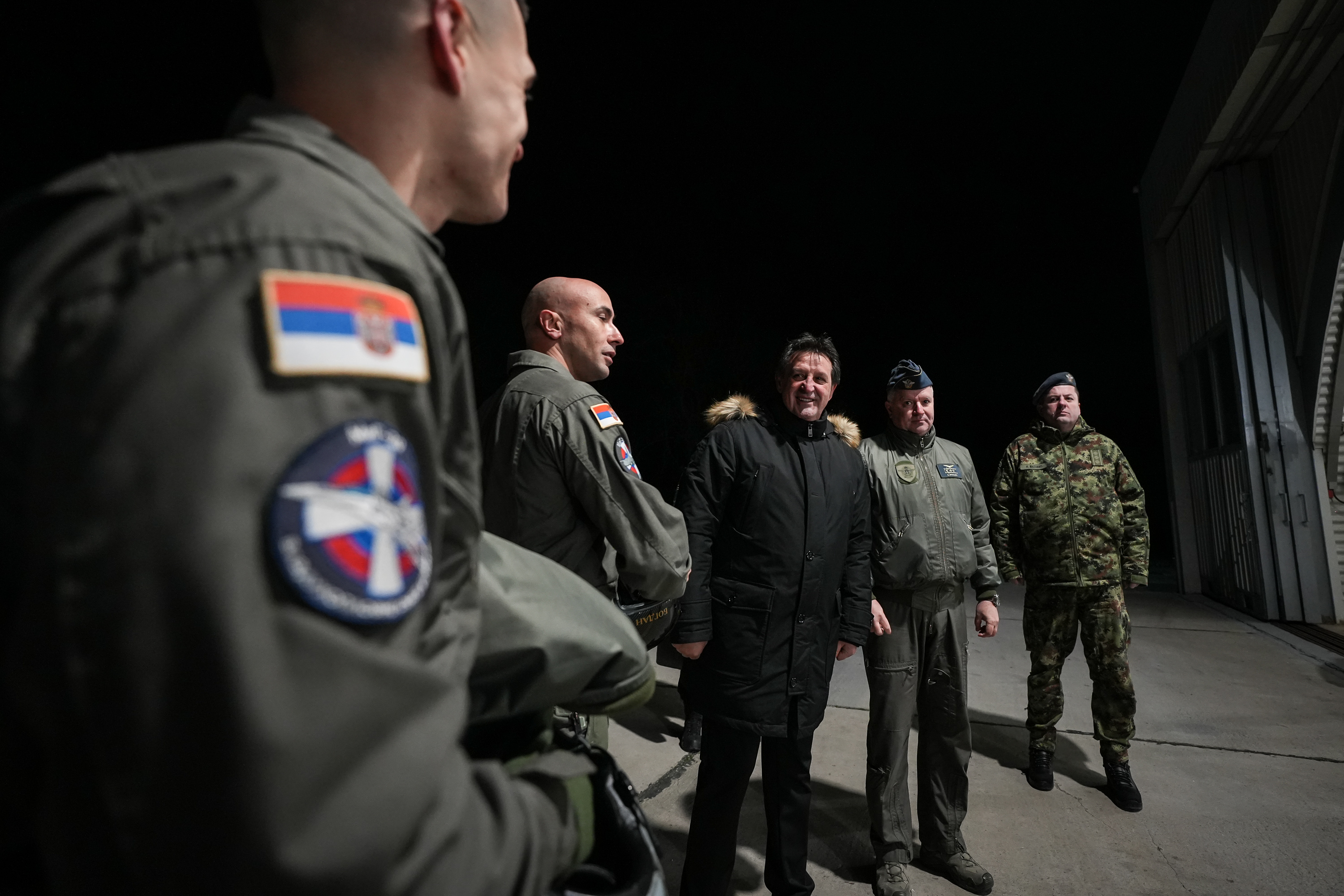 Министар одбране Братислав Гашић обишао је, у новогодишњој ноћи, дежурну јединицу ловачке авијације на војном аеродрому „Пуковник-пилот Миленко Павловић“ у Батајници.