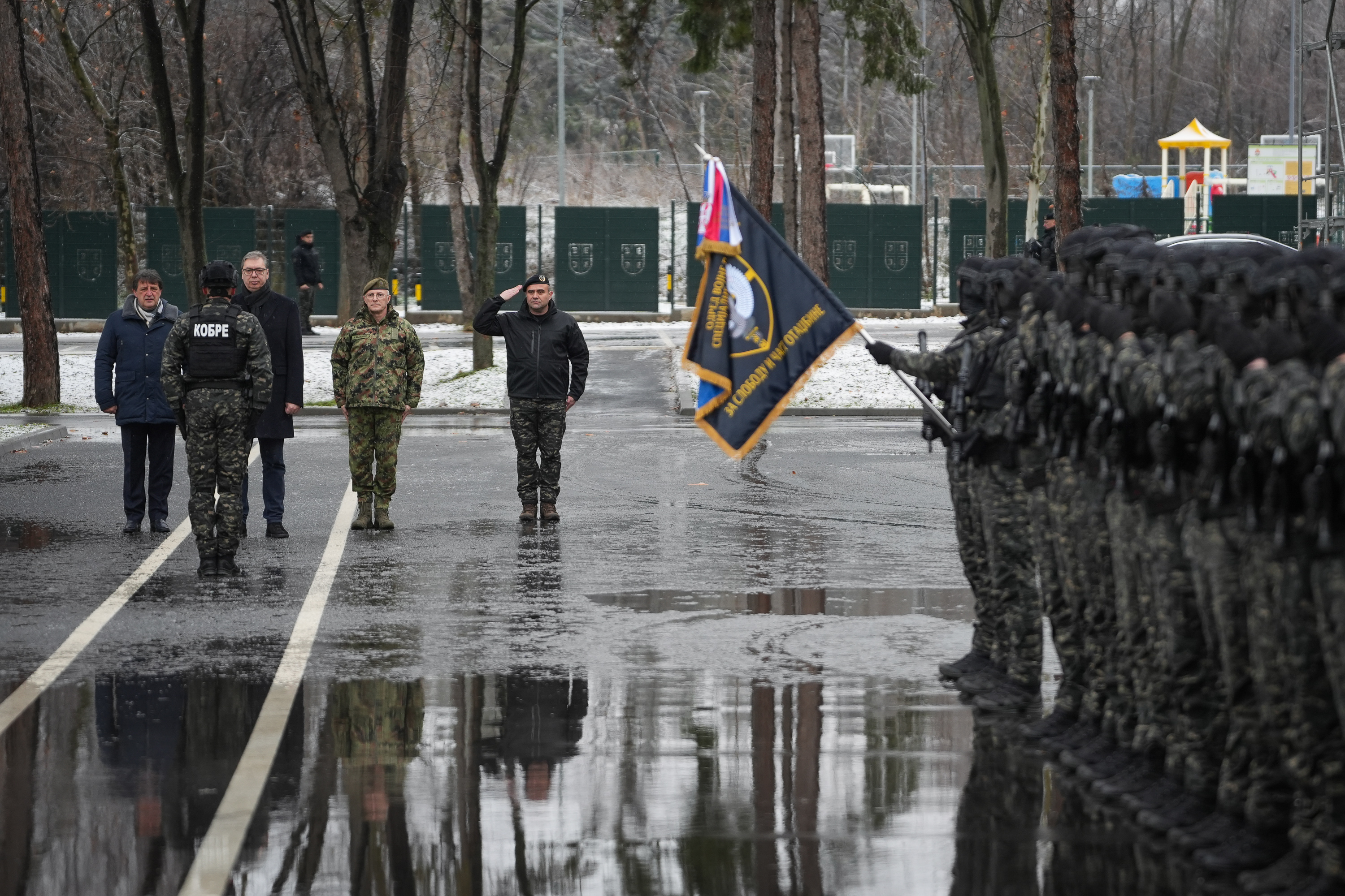 Председник Републике и врховни командант Војске Србије Александар Вучић, заједно са министром одбране Братиславом Гашићем и начелником Генералштаба Војске Србије генералом Миланом Мојсиловићем, обишао је данас Одред војне полиције специјалне намене “Кобре” у касарни “Васа Чарапић” у Београду.