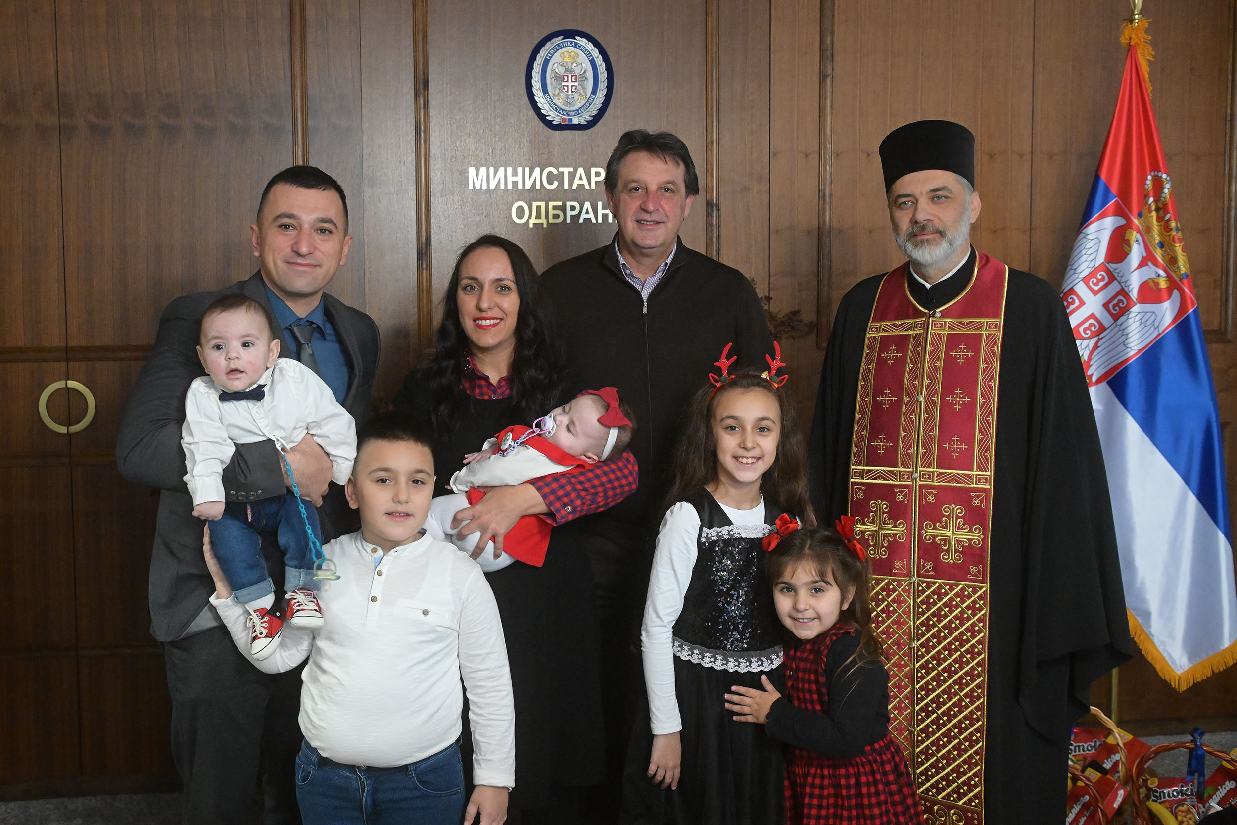 - Велика ми је част што данас имам прилику да угостим велику породицу која својим примером заслужује дивљење и поштовање. Посебно ми је драго то што се ради о припаднику Војске Србије који је подједнако успешан и као отац и као војник, о чему ова дивна породица али и његови резултати у служби најбоље сведоче. Божић нас подсећа на најузвишеније вредности које окупљају породицу и учвршћују веру у човека и отаџбину. Породица је темељ нашег друштва и снага Војске Србије, а брига о сваком припаднику и његовим најближима остаје трајно опредељење Министарства одбране и Војске Србије – нагласио је министар Гашић и додао да посебне честитке на Божић упућује припадницима војске који су и у време празника ангажовани на својим задацима чувајући сигурност свих грађана Републике Србије.