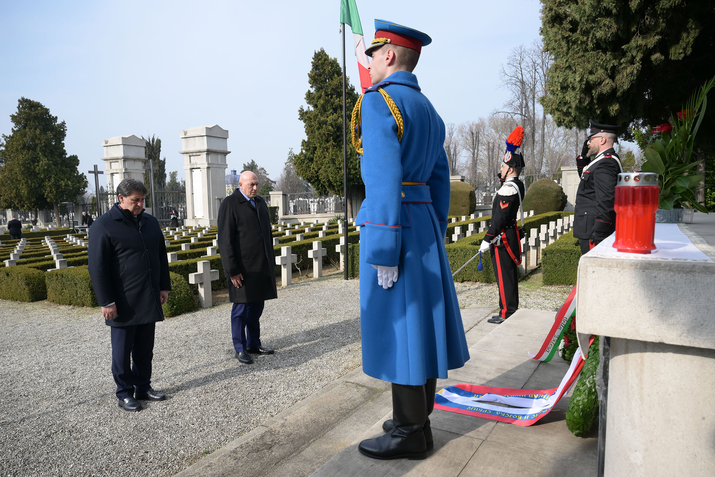 Министар одбране Братислав Гашић и министар одбране Републике Италије Гвидо Крозето положили су данас венце и одали почаст на Италијанском војном гробљу и код Спомен-костурнице браниоцима Београда у Првом светском рату.