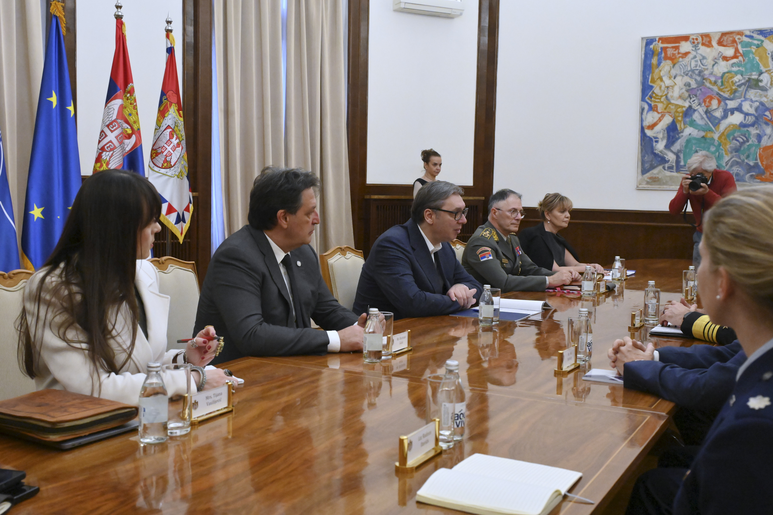 Председник Републике и врховни командант Војске Србије Александар Вучић састао се данас, у Београду, са командантом Команде Здружених снага НАТО у Напуљу адмиралом Џорџом Вајкофом.