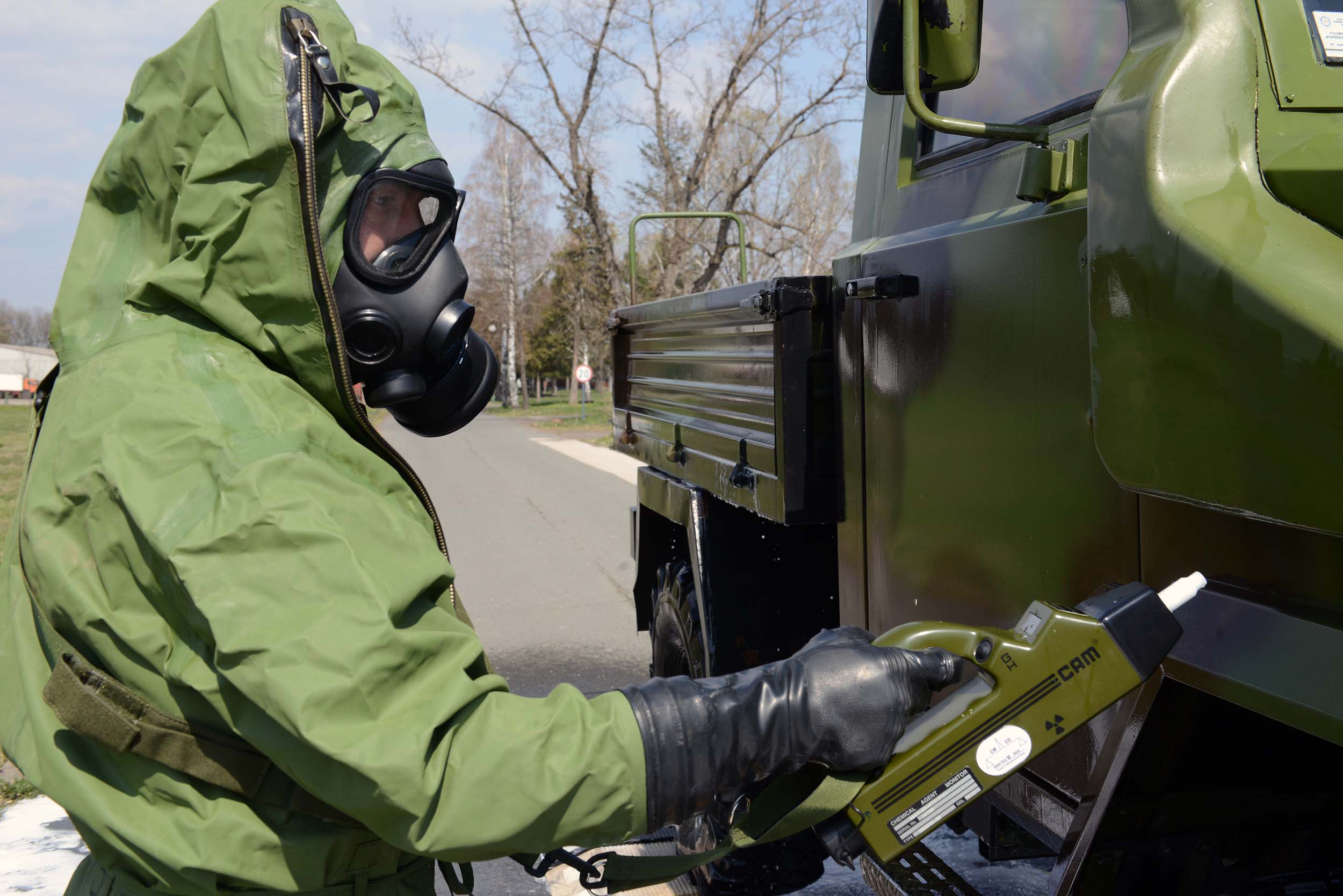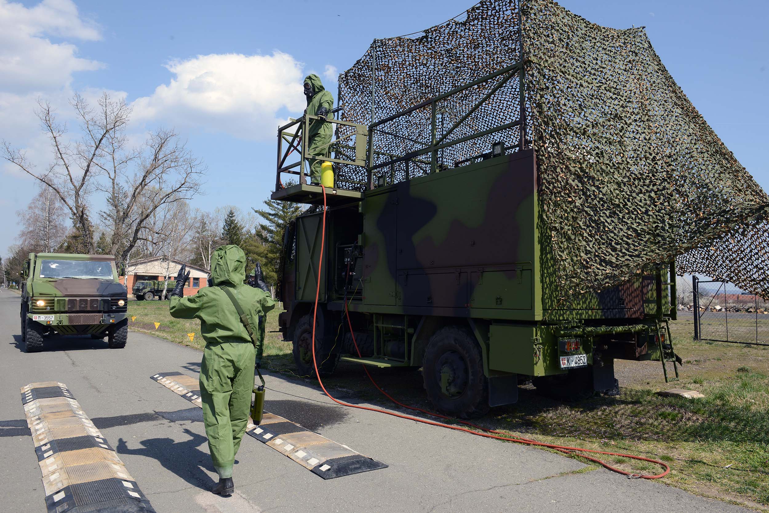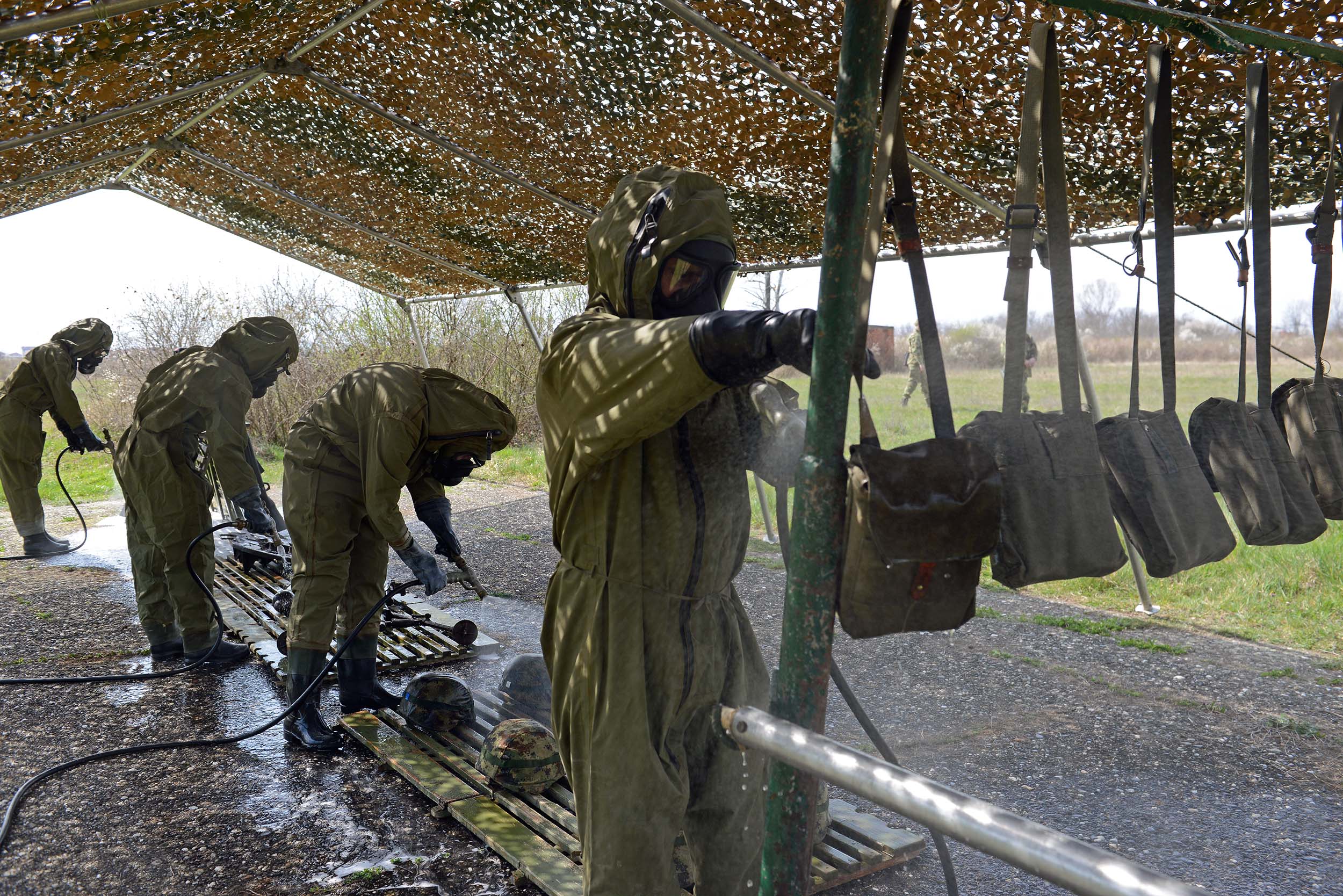 На војном полигону „Равњак“ у Крушевцу, припадници 246. батаљона АБХО сада увежбавају спровођење нуклеарно-хемијско-биолошке контроле у условима употребе оружја за масовно уништење или акцидентних ситуација. Обука обухвата хемијско извиђање праваца, одређивање граница контаминиране зоне и деконтаминацију земљишта и средстава.