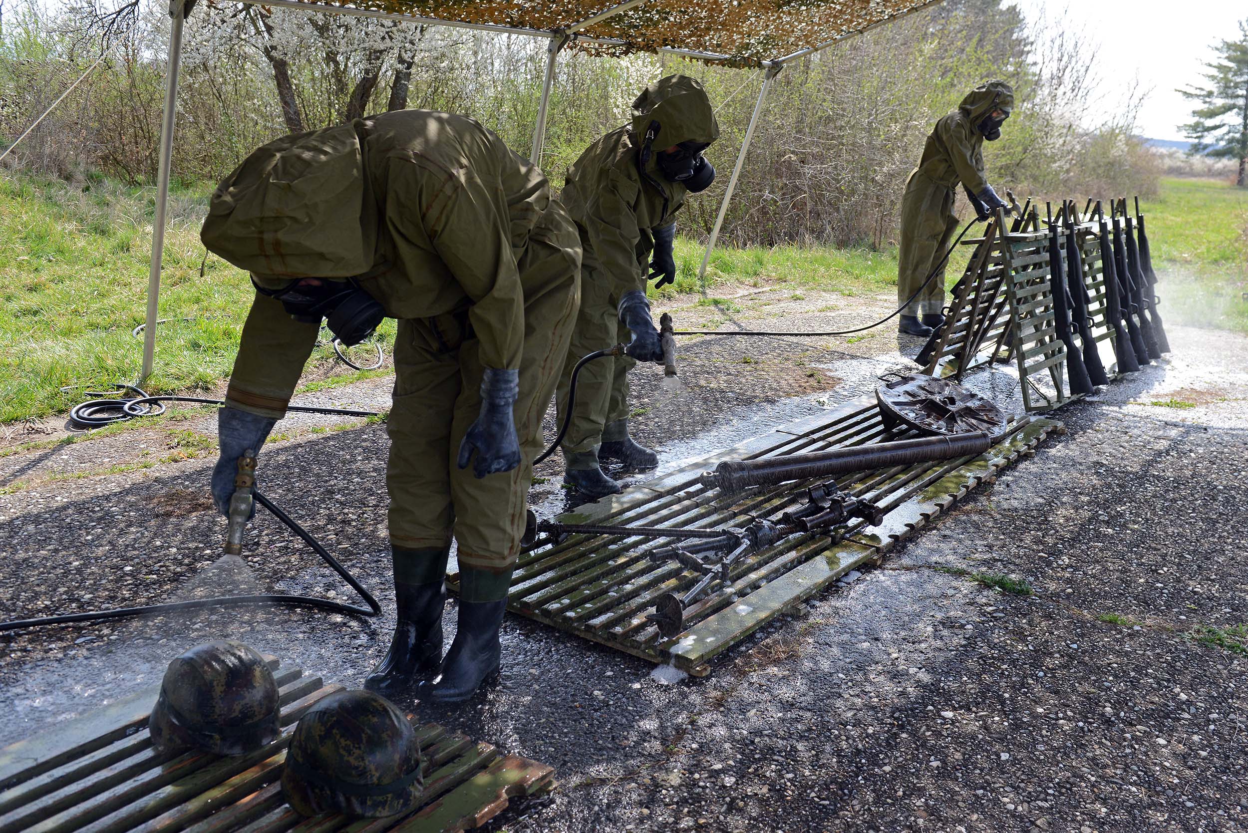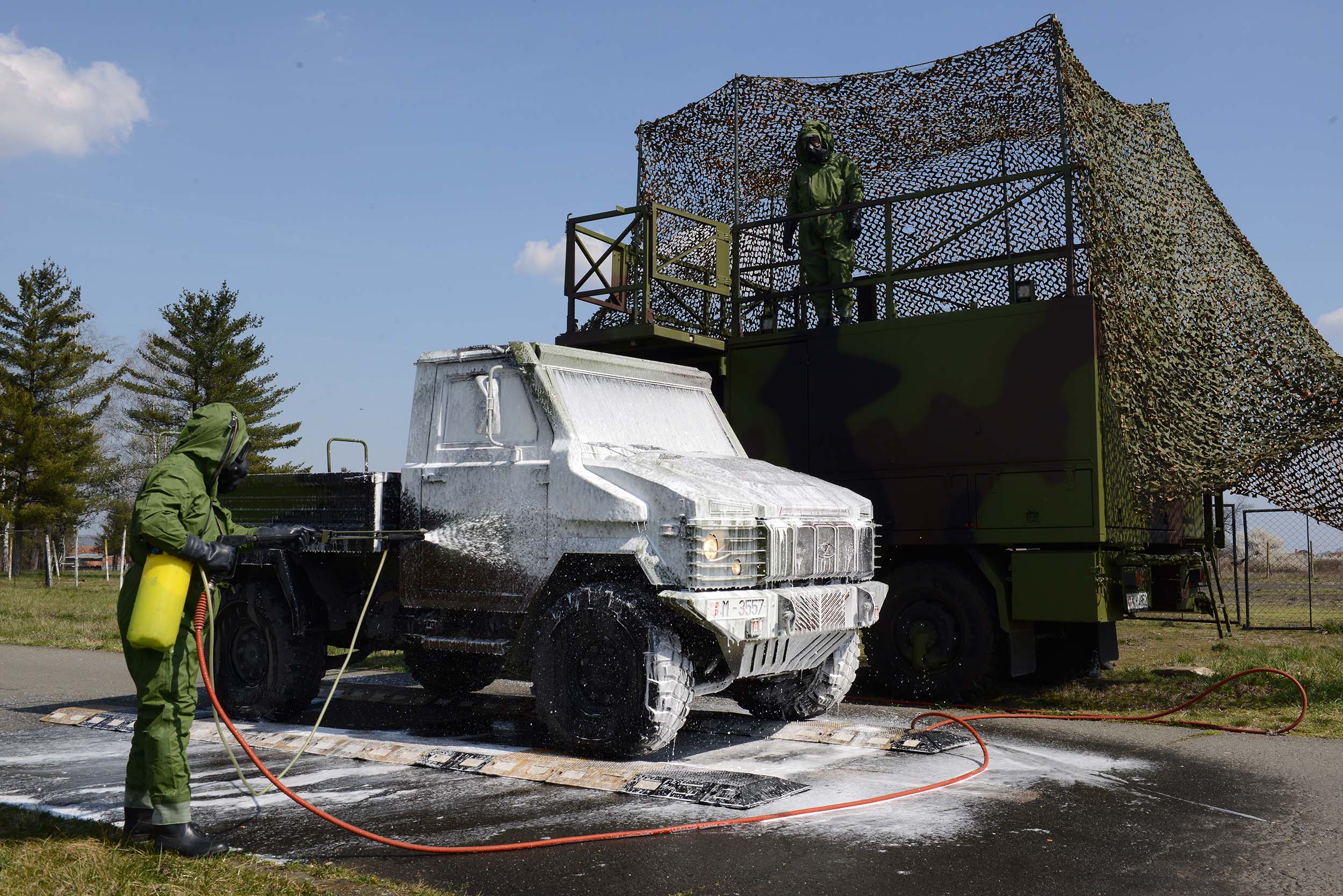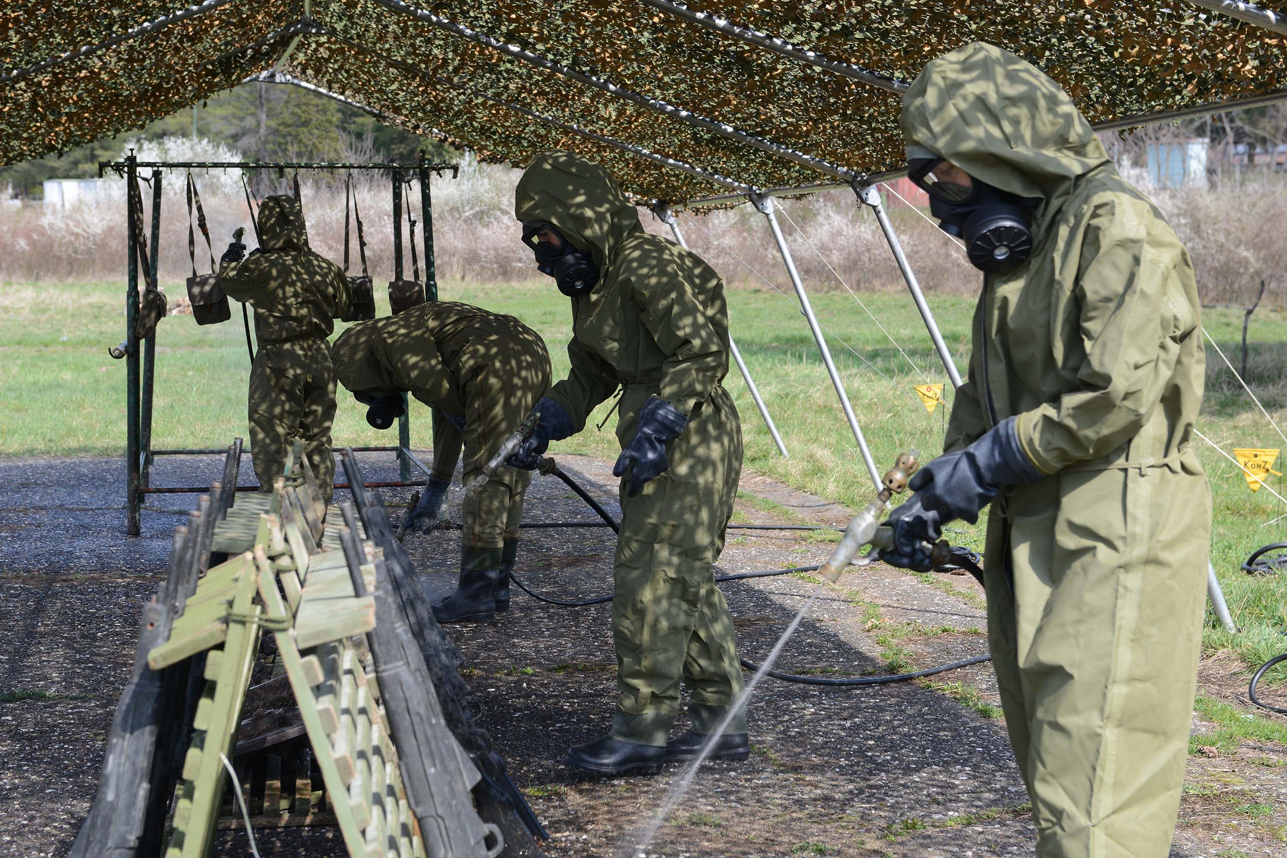На војном полигону „Равњак“ у Крушевцу, припадници 246. батаљона АБХО сада увежбавају спровођење нуклеарно-хемијско-биолошке контроле у условима употребе оружја за масовно уништење или акцидентних ситуација. Обука обухвата хемијско извиђање праваца, одређивање граница контаминиране зоне и деконтаминацију земљишта и средстава.