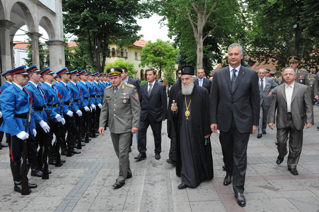 Захваливши на одличју, министар Шутановац је рекао да му је учињена велика част као и да је дошао у Ниш да би с патријархом "завршио историјски посао" - потписивање Споразума о вршењу верске службе у Војсци Србије.