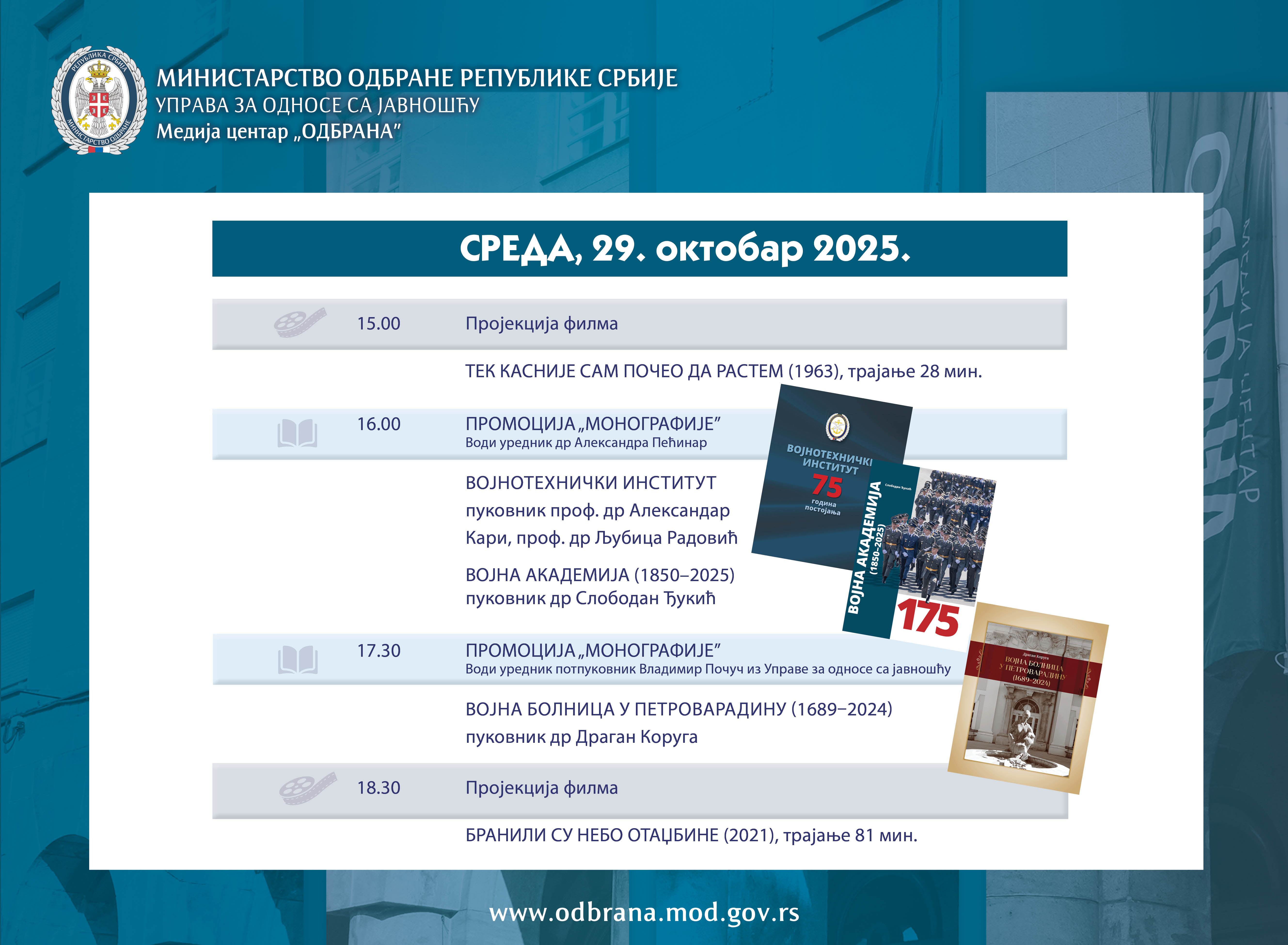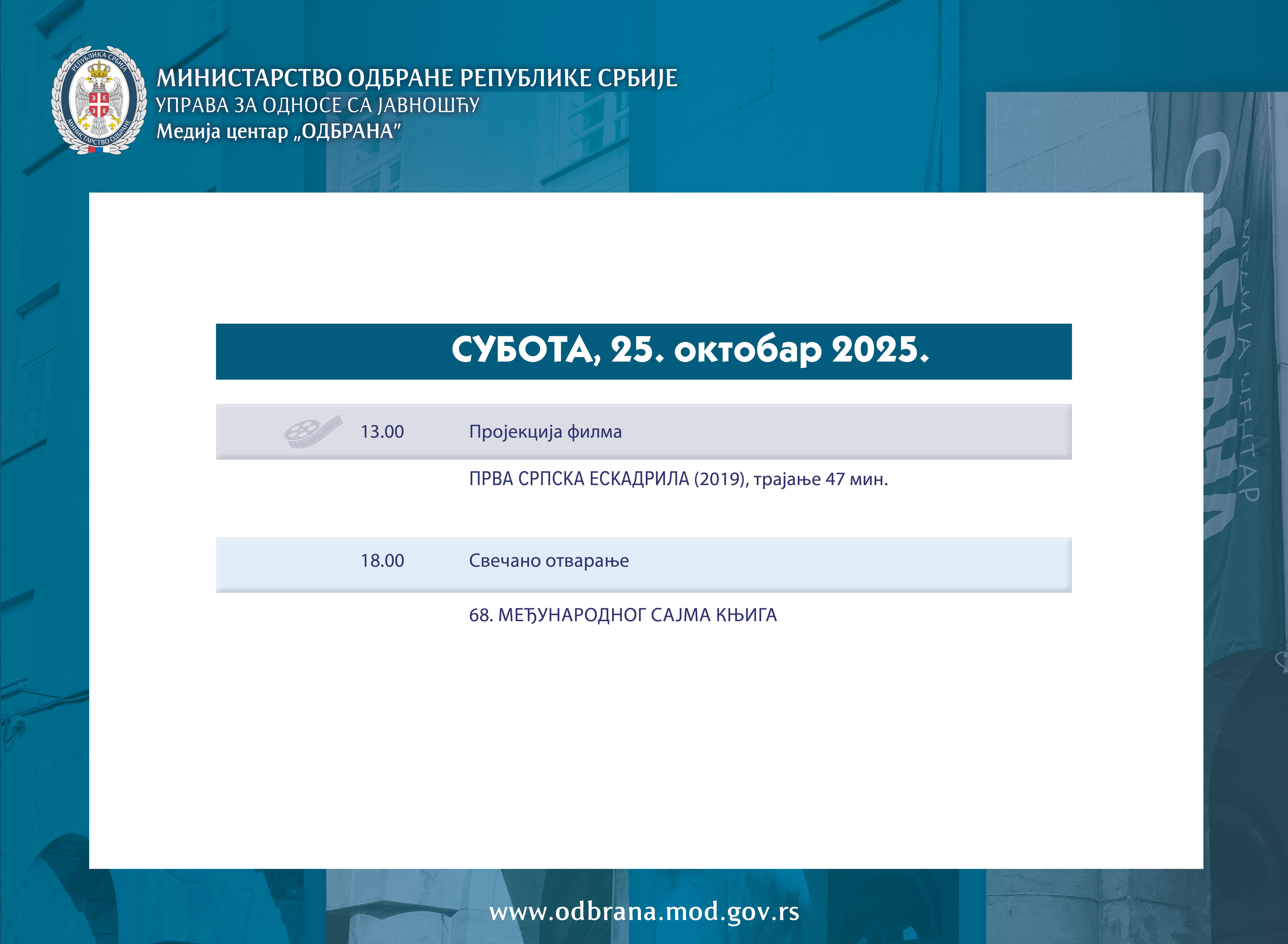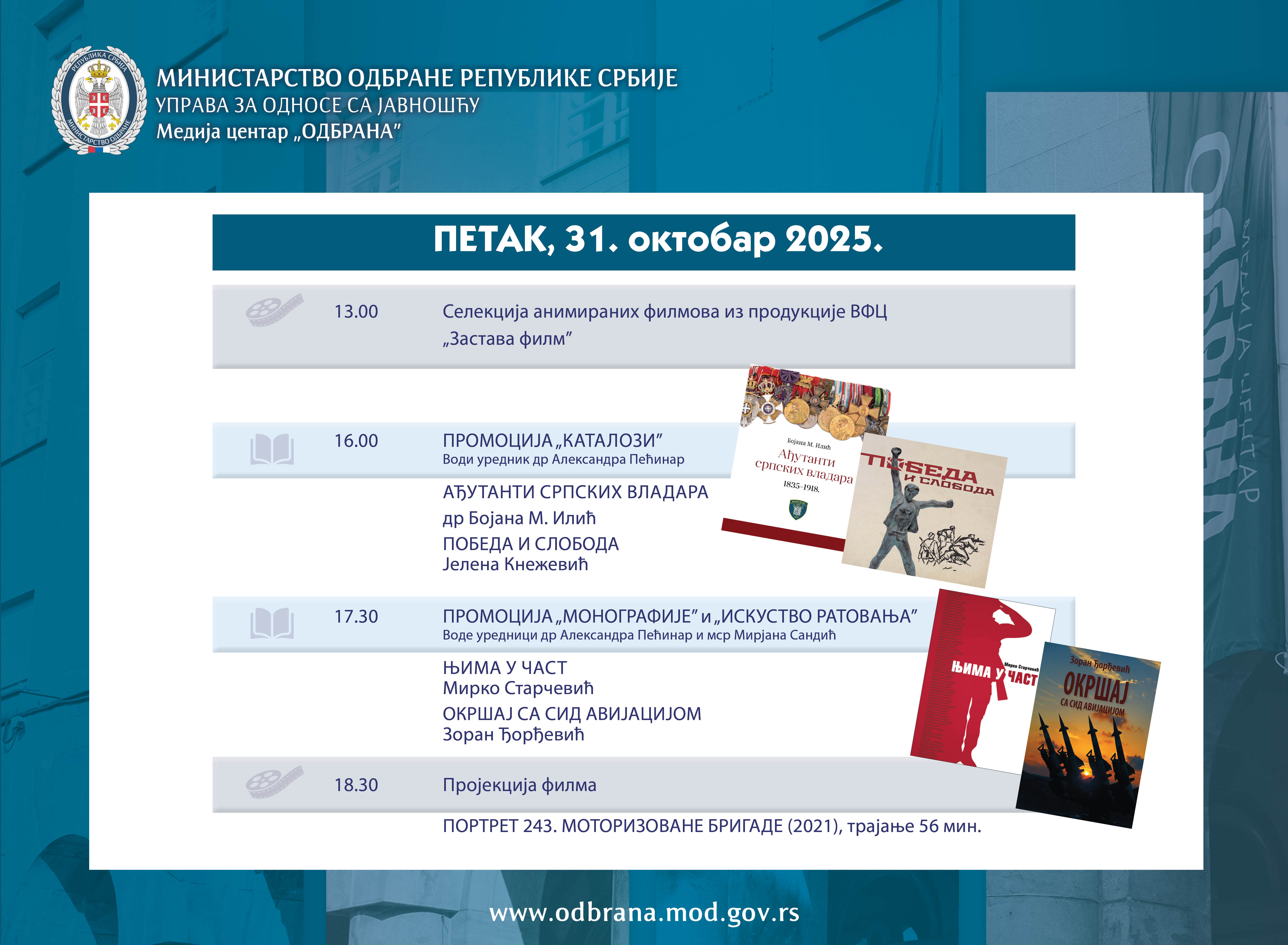 ВестиНајавеСаопштења Међународна војна сарадњаКонкурсиАрхиваФотоархиваВидеоархиваЈавна расправа 24.10.2025.Хроника Сајма књига 2025. године ВестиНајавеСаопштења Међународна војна сарадњаКонкурсиАрхиваФотоархиваВидеоархиваЈавна расправа