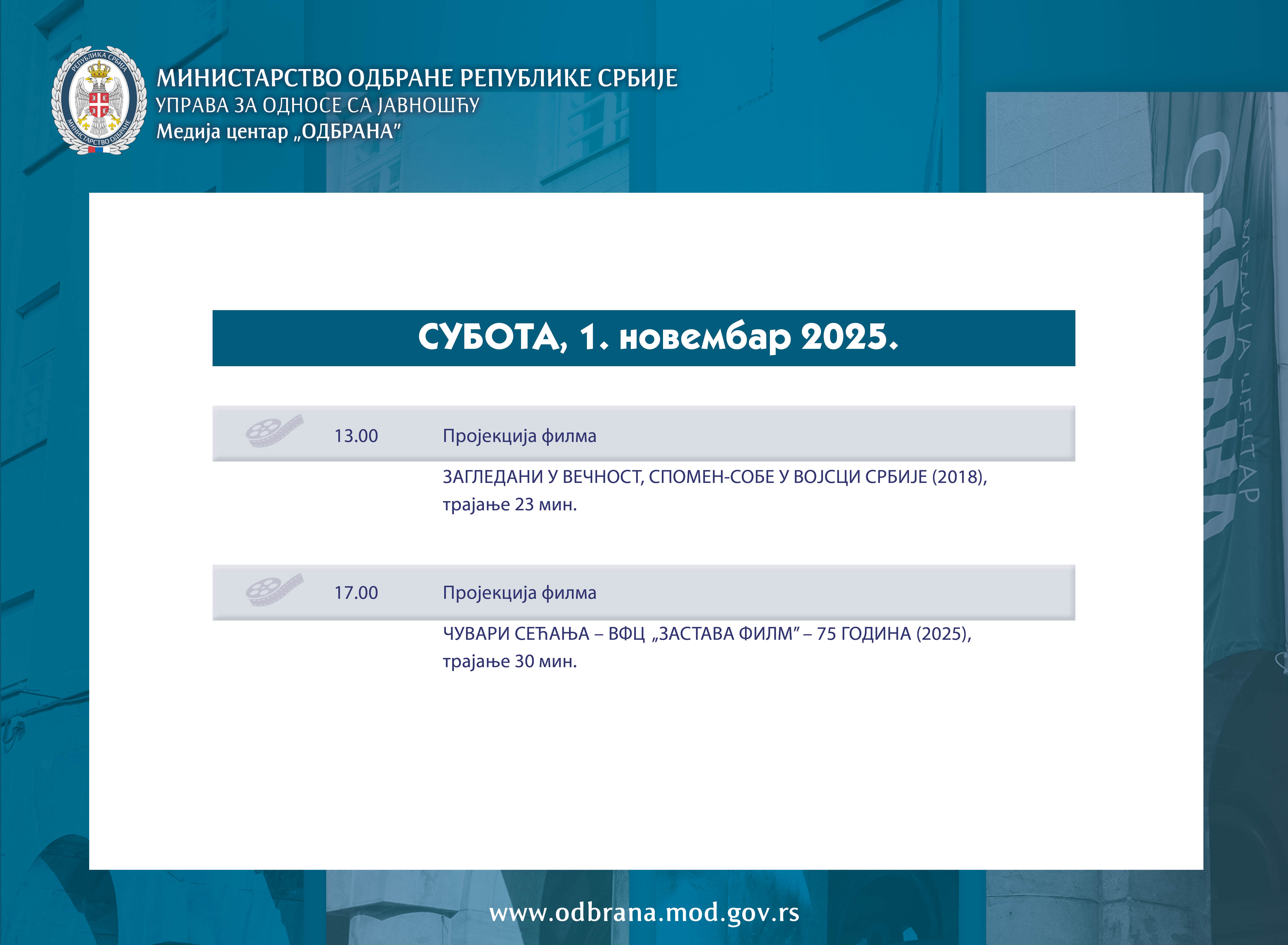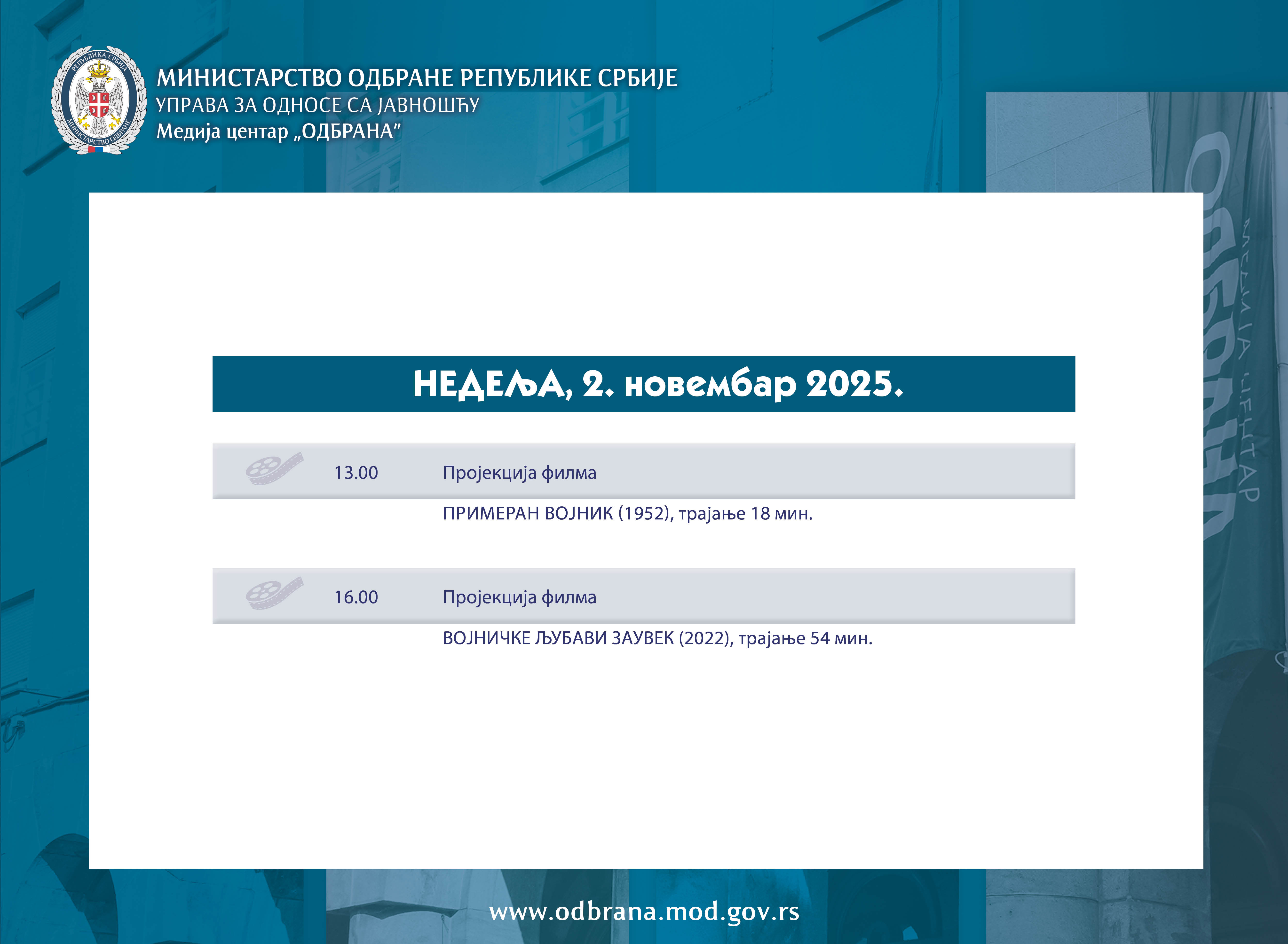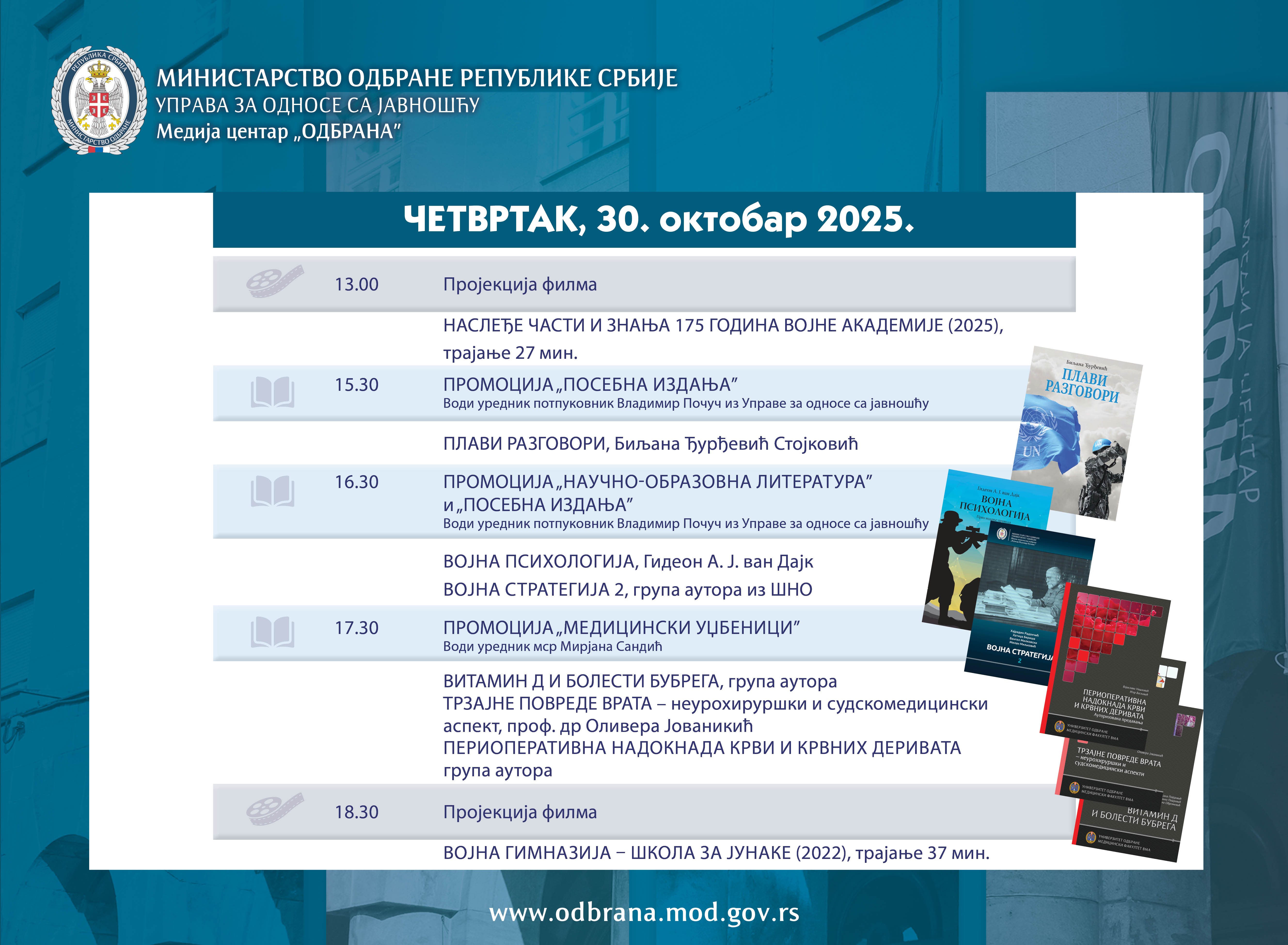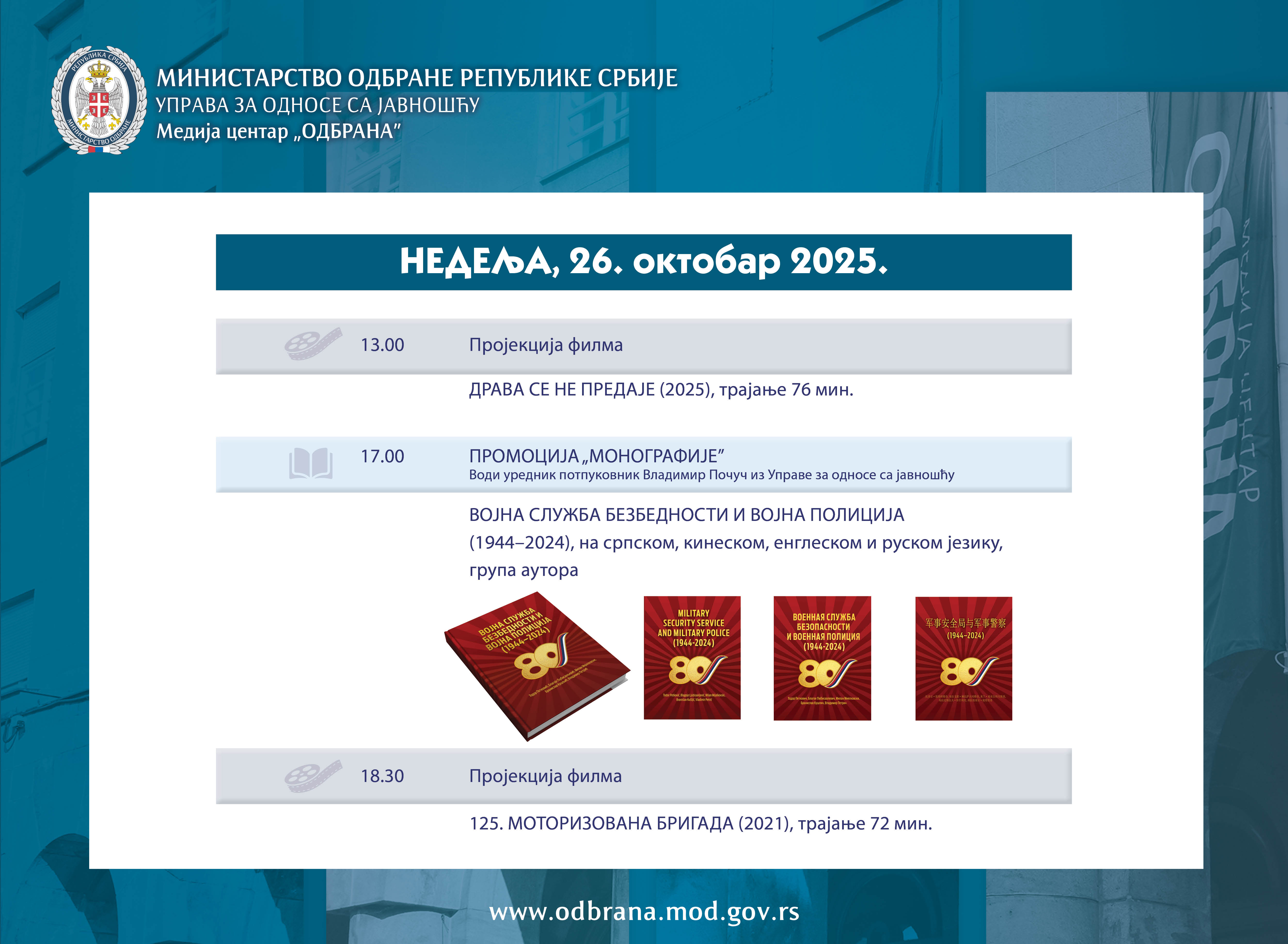 ВестиНајавеСаопштења Међународна војна сарадњаКонкурсиАрхиваФотоархиваВидеоархиваЈавна расправа 24.10.2025.Хроника Сајма књига 2025. године ВестиНајавеСаопштења Међународна војна сарадњаКонкурсиАрхиваФотоархиваВидеоархиваЈавна расправа