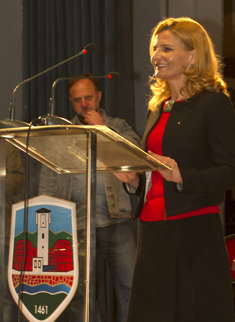 The mayor of Novi Pazar dr Meho Mahmutovic presented the plaque last night at the celebration ceremony to the ministers emissary State Secretary Tanja Miscevic. On that occasion she conveyed congratulations of minister Sutanovac on occasion of the jubilee of Novi Pazar, while also conveying his message that this award was not an award to him personally but to the whole MoD and SAF team. Tanja Miscevic added that “a team can be only as good as its team leader”, expressing her belief that the established cooperation between SAF and Novi Pazar would continue in the future, for another, as she said, “ five hundred and fifty years at least, and beyond”.