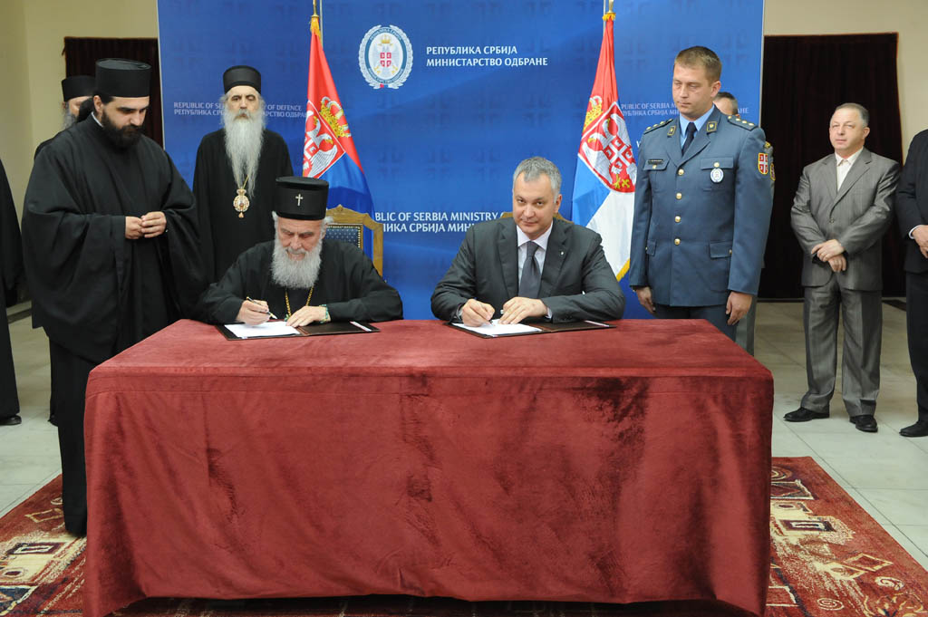 Patriarch Irinej blessed the Agreement and pointed out that he was signing a "historical agreement not only for the SPC, but also for the Army of Serbia.