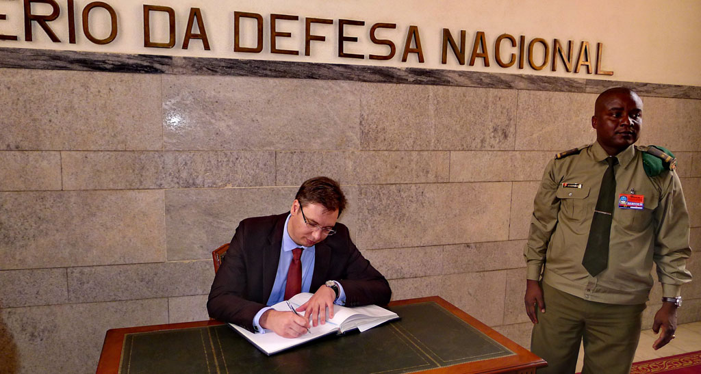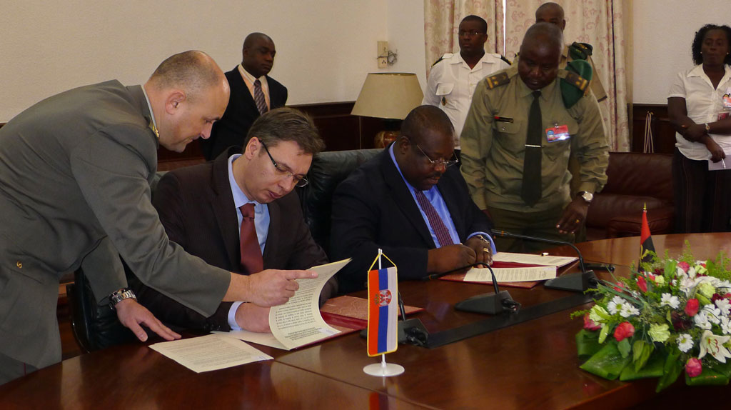 First Deputy Prime Minister and Defence Minister Aleksandar Vucic and Defence Minister of Angola Gen. Candido Pereira dos Santos Van Dunem signed joint statement on the talks between the delegations of the Ministry of Defence of the Republic of Serbia and the Ministry of Defence of the Republic of Angola today.After the inking of the agreement, Vice President Vucic met with President of Angola Jose Eduardo dos Santos, who is also the supreme commander of the Angolan armed forces, and on this occasion presented a letter from the President of the Republic of Serbia, Tomislav Nikolic. The topic of discussion was the promotion of cooperation and economic relations between the two countries. During the meeting, the two officials noted that this visit was of great significance for lunching greater military and economic cooperation between Serbia and Angola.