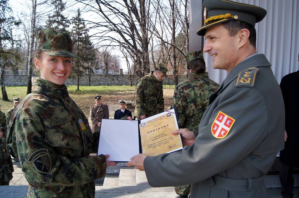 Acknowledgments were awarded for results achieved in the past period. The best department of the Military Academy in the past year is the Department of Military Electronic Engineering, the best teacher – Captain Mihael Bucko, MSc, and the best scientific worker Lieutenant Colonel Boban Bondzulic, MSc, while the best skills teacher is Colonel Rade Slavkovic, PhD. The best cadet of the 136th class is Bojana Regodic, cadet Lazar Stojnic in the 137th, Cadet Milan Stevanovic in the 138th, Dejan Malidza in the 139th, and the best civilian student is Momir Markovic. The best teacher of the Military Highschool is meths teacher Anka Kesic, and the best student of teh Military Highschool is Mladen Sebek.