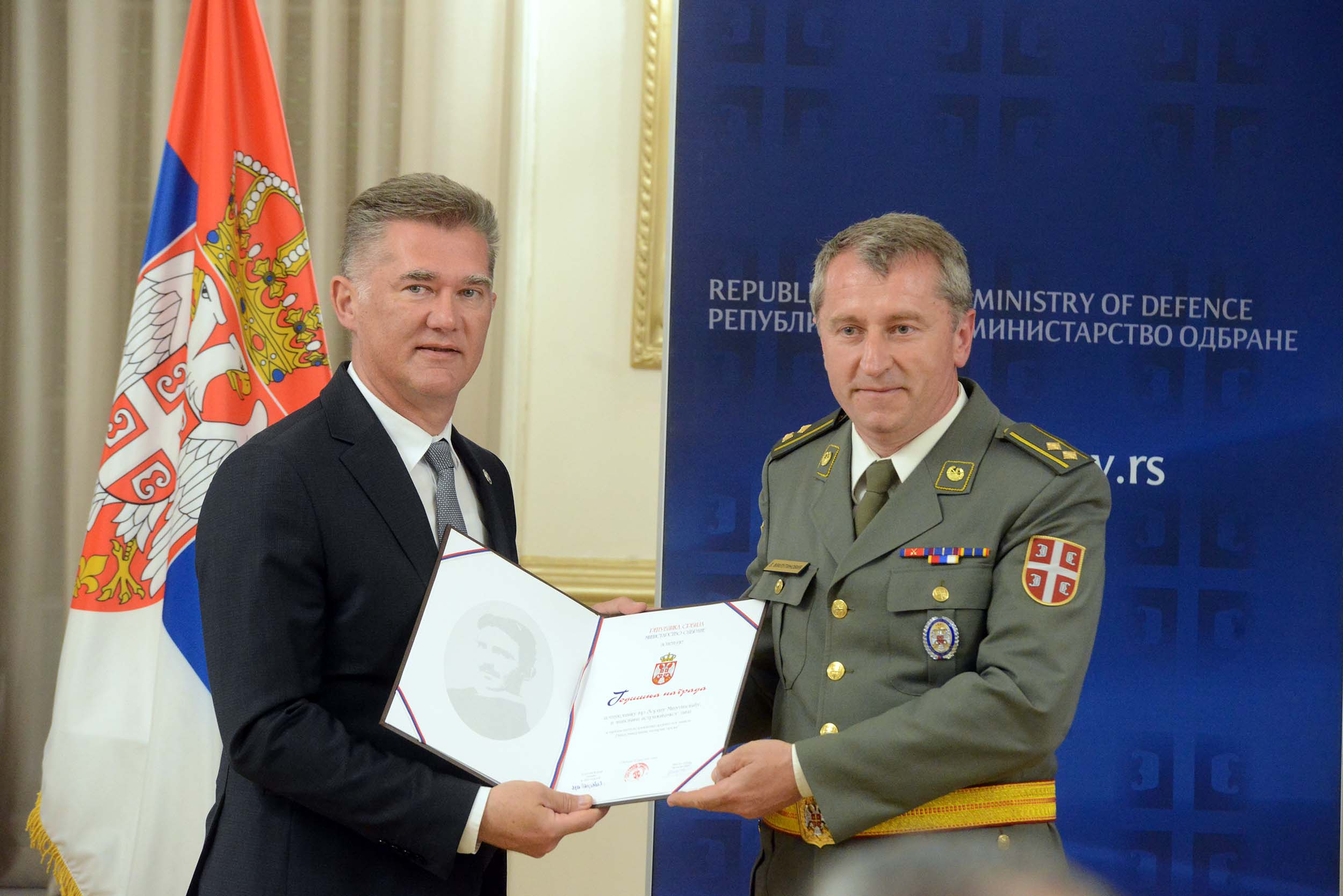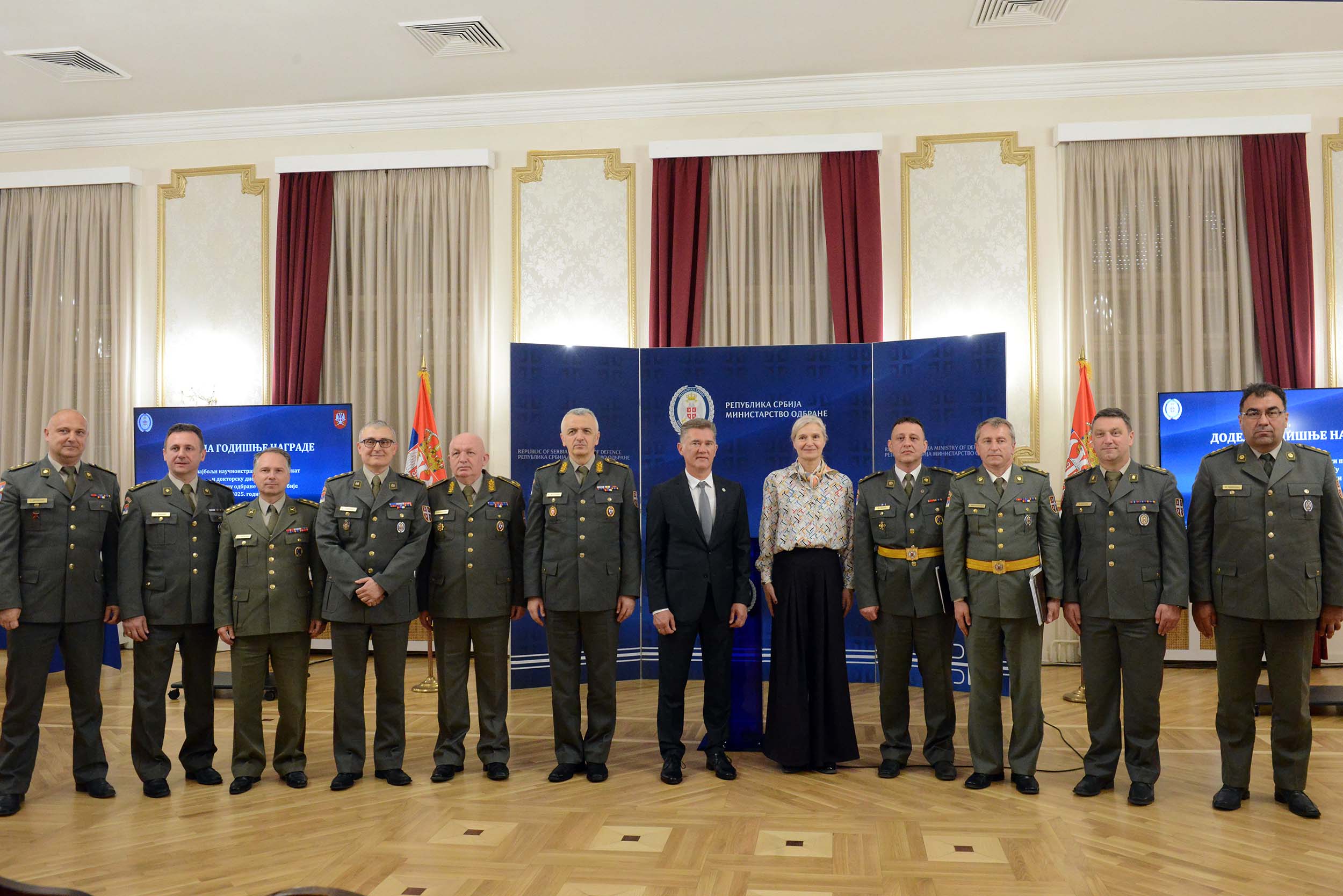Ovogodišnje nagrade, povodom Dana Vojske Srbije, dobitnicima je uručio vršilac dužnosti pomoćnika ministra za politiku odbrane Predrag Bandić.