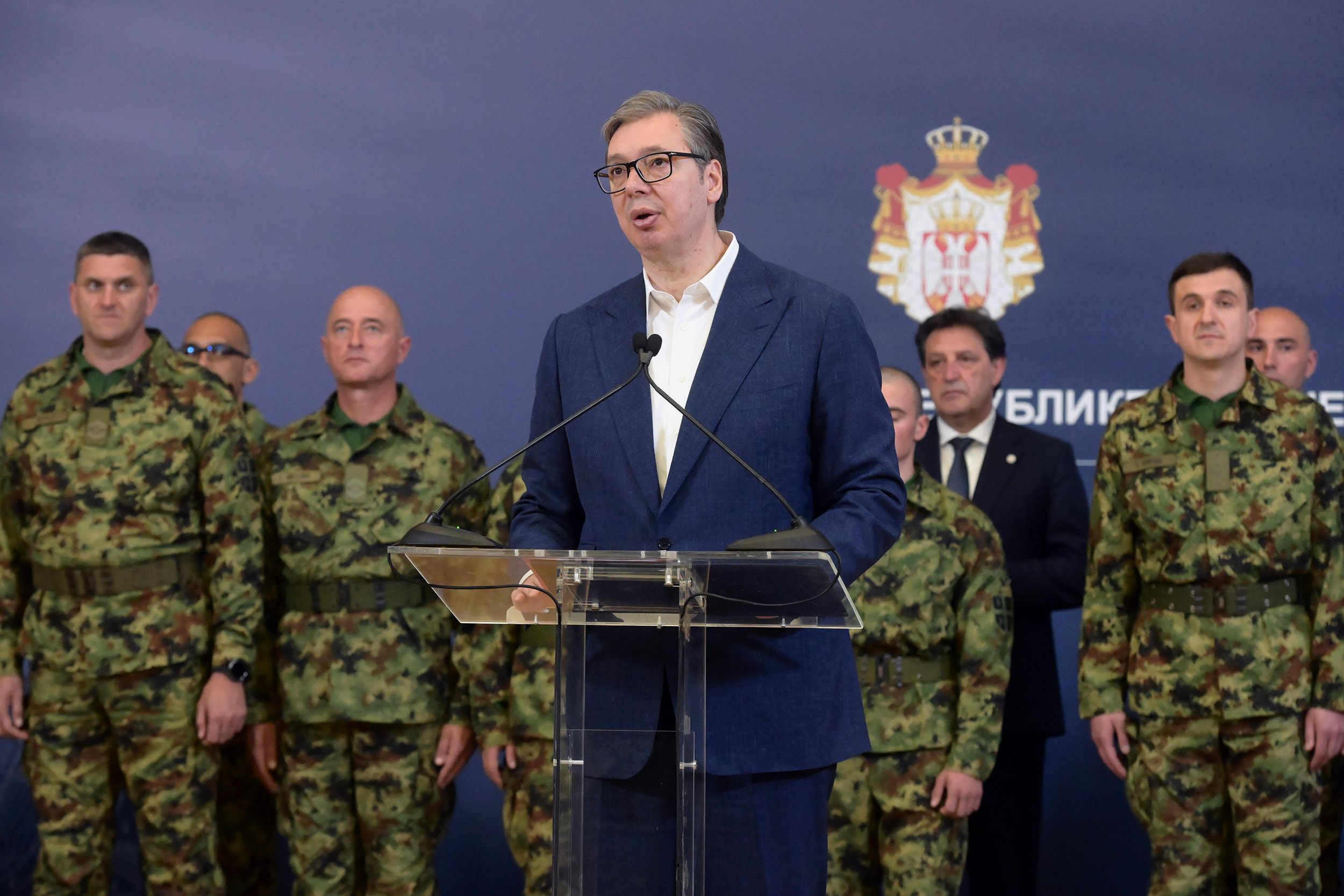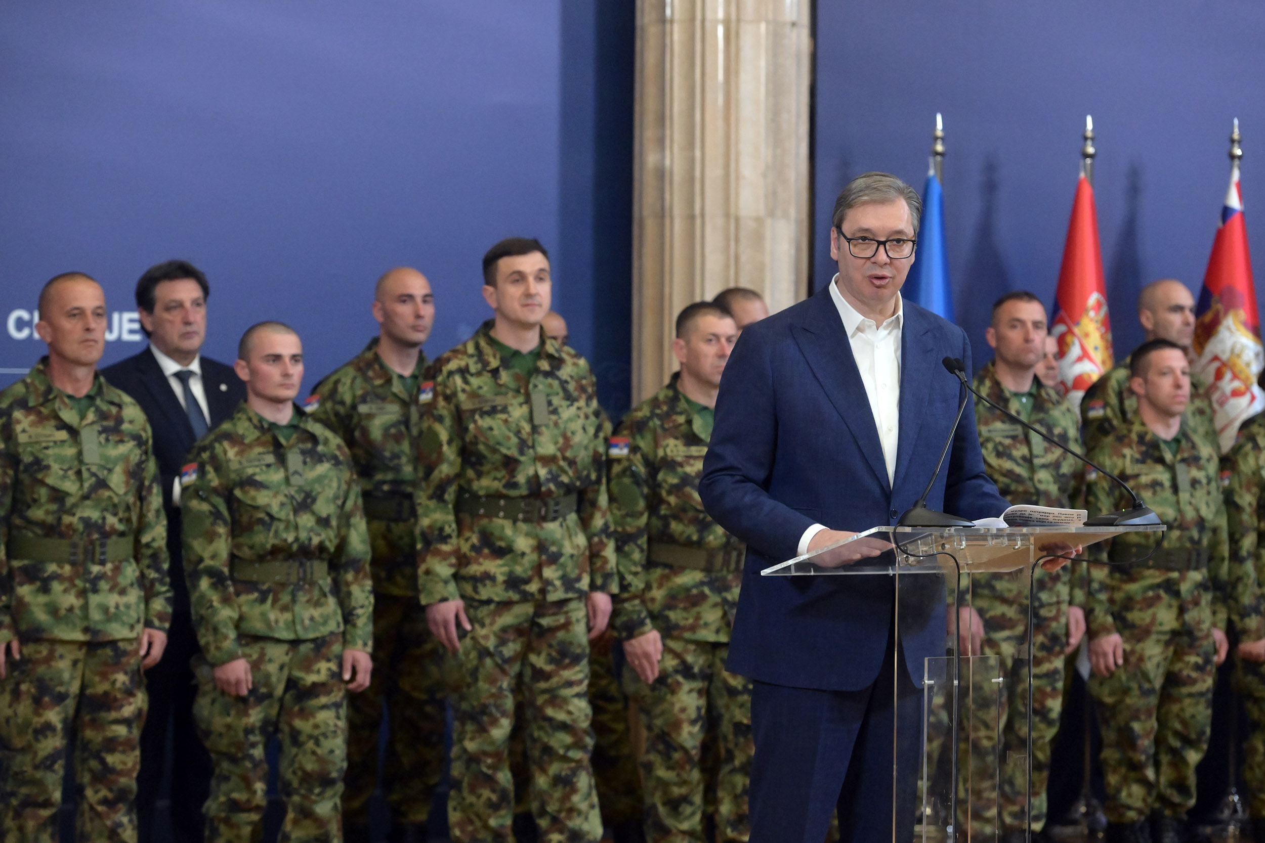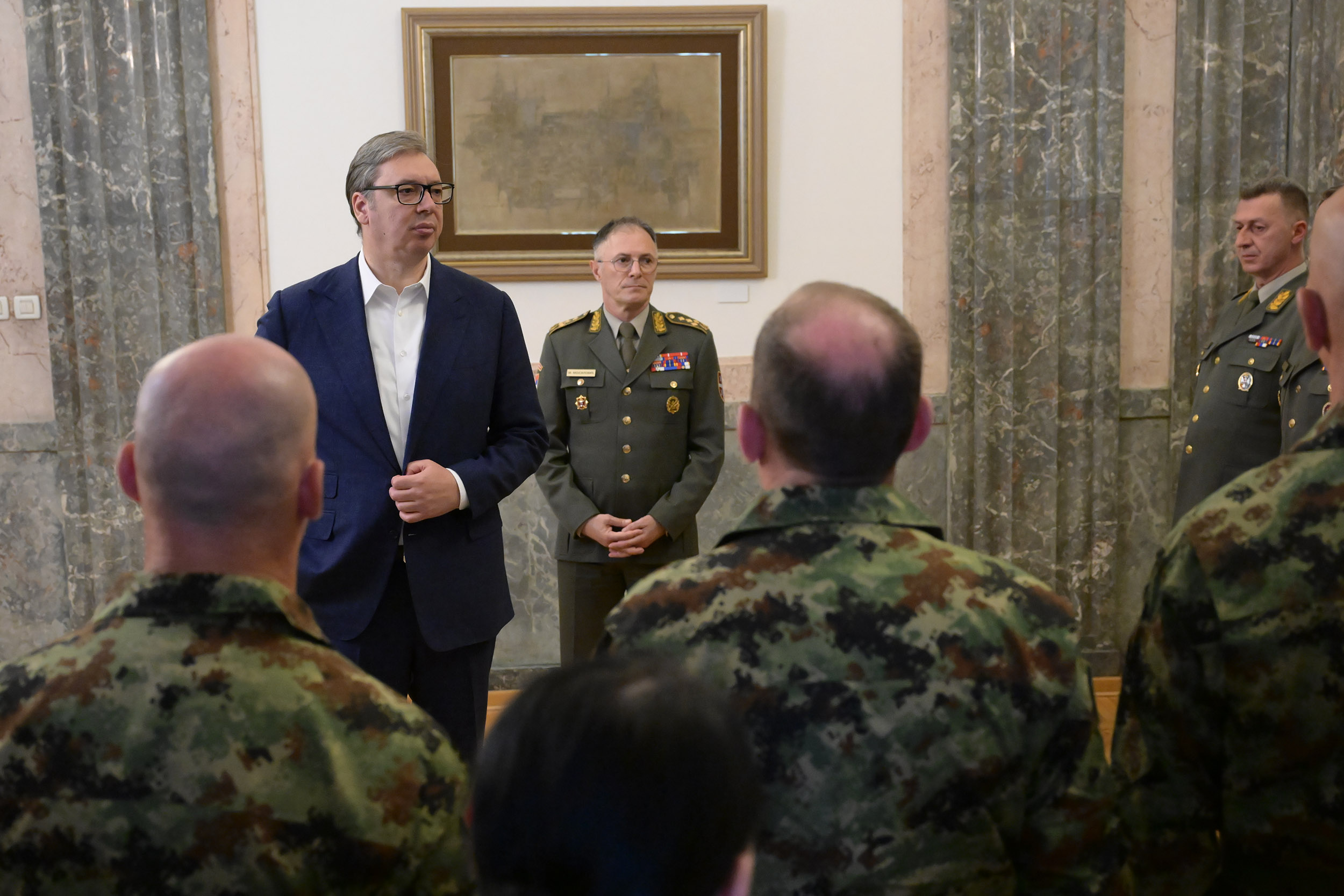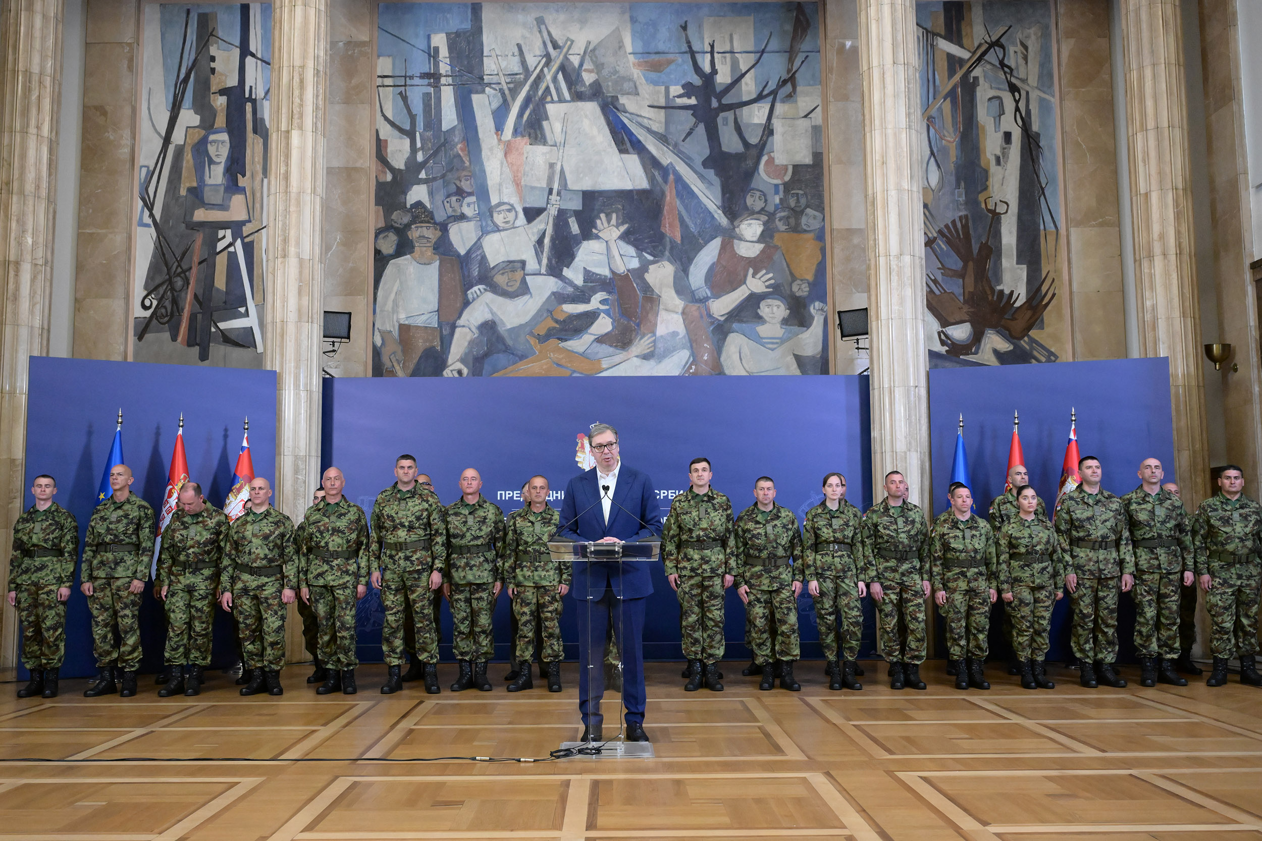 - Mi uvek brinemo i donosimo odluku o eventualnoj evakuaciji ili pomeranju ljudi zajedno sa predstavnicima drugih zemalja. Svi oni znaju da Srbi nisu kukavice, a mi ćemo se ponašati profesionalno, odgovorno i gledati da čuvamo živote naših pripadnika, baš kao što oni tamo čuvaju živote običnog stanovništva, zbog čega su i tu da provode odluku Ujedinjenih nacija. Vama hvala na hrabrosti, trudu i radu, hvala na tome što ste izdržali bez svojih porodica dugo vremena i što ni jednog trenutka niste doveli u pitanje ugled srpskog vojnika, snagu srpske zastave, čast imena naše zemlje i to je nešto što veoma poštujemo – naglasio je predsednik Srbije dodavši da se nada da će svoje znanje i iskustvo preneti svim kolegama.