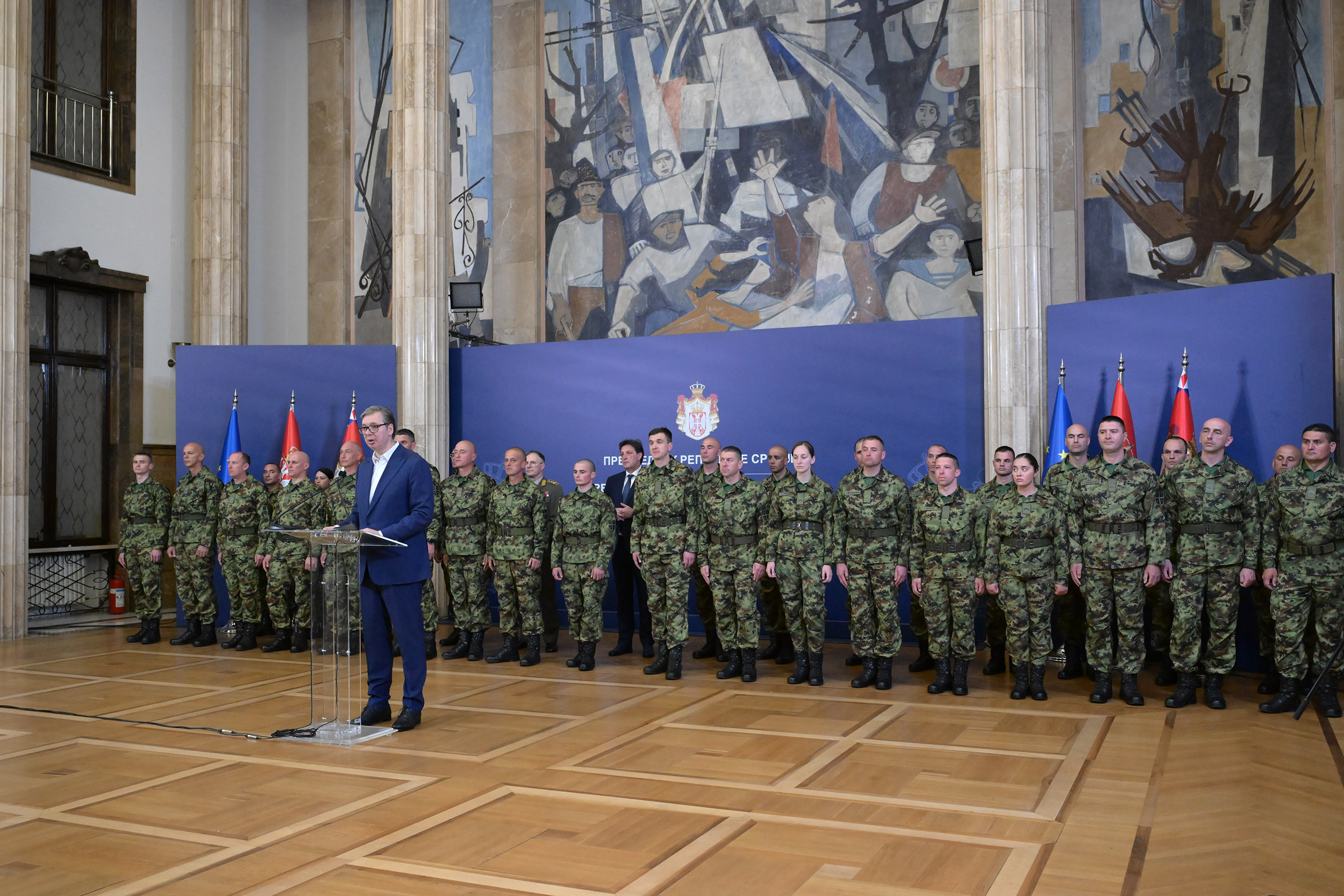 - Ljudi bi trebalo takođe da znaju da su ove devojke i momci stekli ogromna iskustva u izuzetno zahtevnim, složenim, teškim uslovima koje će sada da prenose svojim kolegama. Oni su iz različitih jedinica okupljeni. Sada se vraćaju u matične jedinice u našoj zemlji, i svoje znanje, svoje iskustvo, sve ono što su videli, što su naučili, sada mogu da prenesu svojim mlađim kolegama, makar ona iskustva koja oni nisu mogli da dožive – rekao je predsednik Republike.
