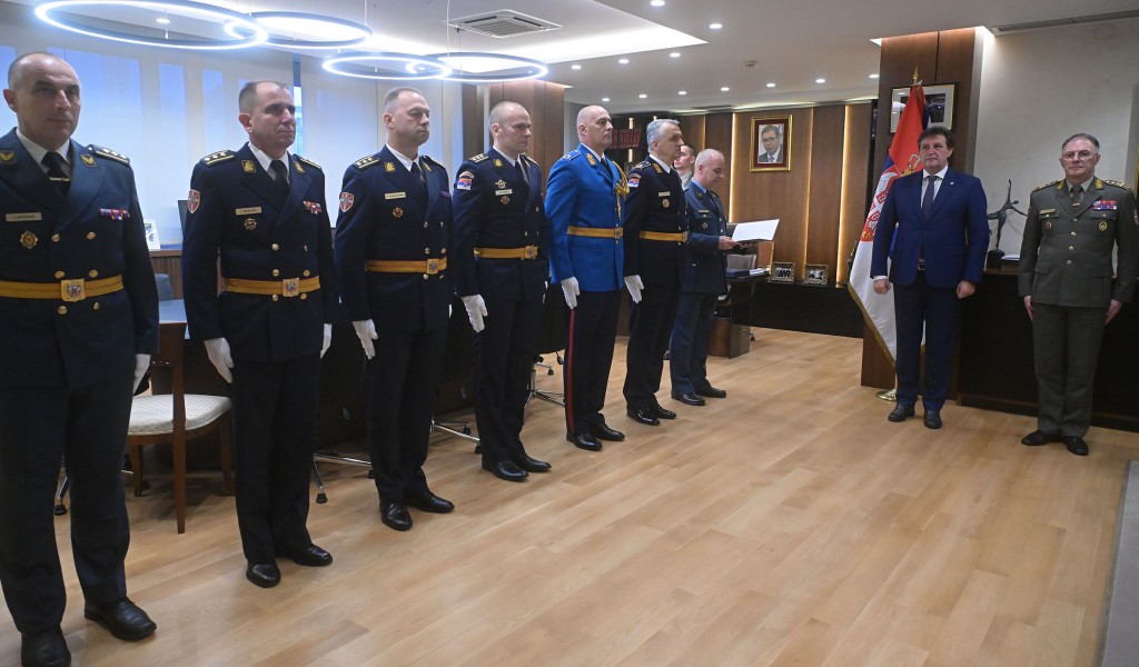 Ministar odbrane Bratislav Gaić uručio je danas oficirima Vojske Srbije ukaze predsednika Republike i vrhovnog komandanta Vojske Srbije Aleksandra Vučića o unapređenjima i postavljenjima na nove ...